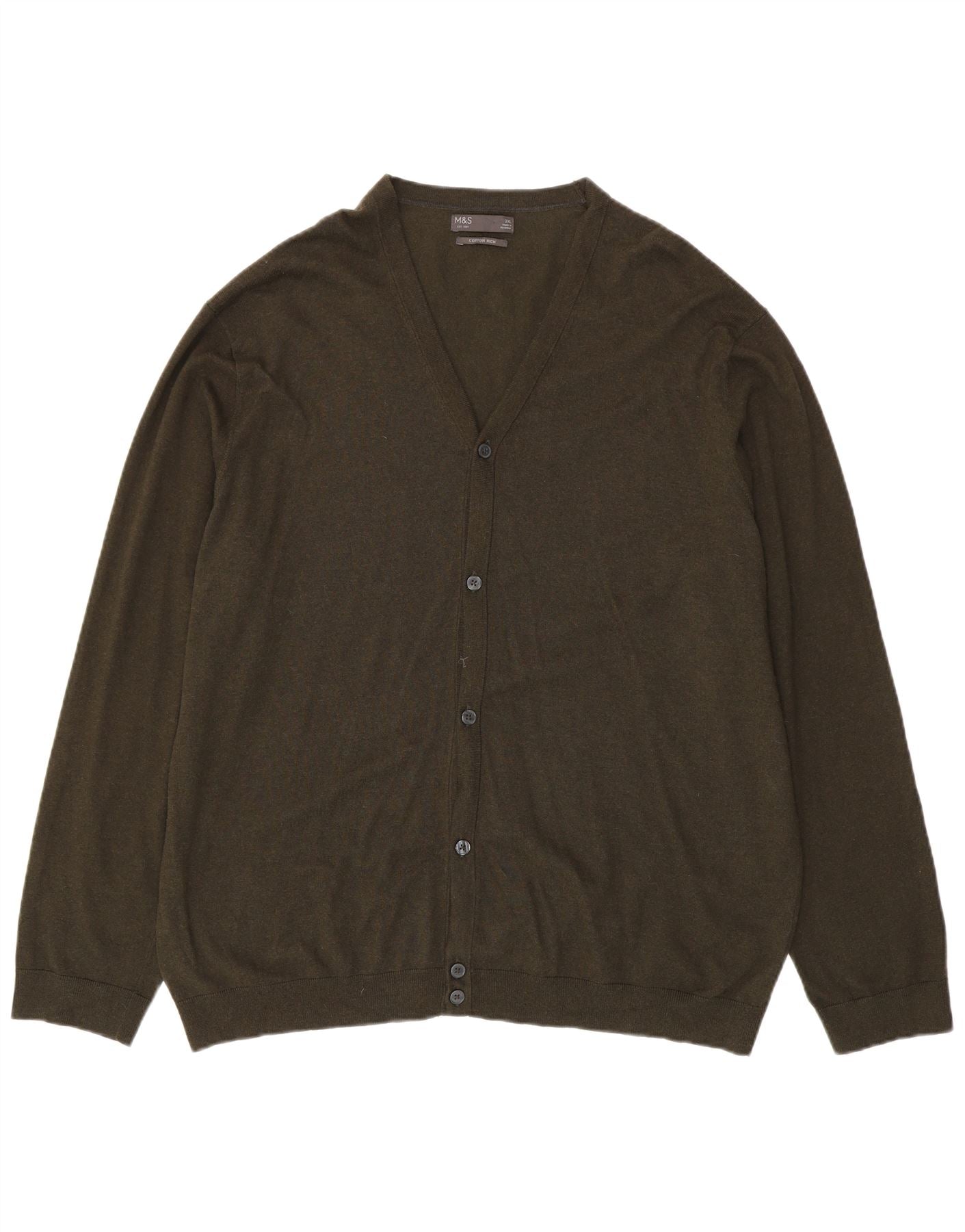 Ανδρικό πουλόβερ ζακέτα Marks & Spencer 2XL Χακί βαμβακερό