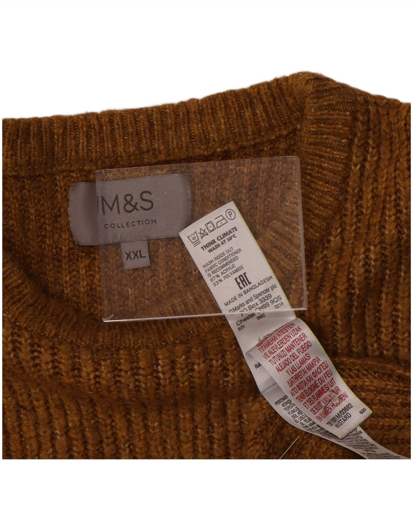 MARKS & SPENCER Ανδρικό πουλόβερ με λαιμόκοψη 2XL καφέ ακρυλικό
