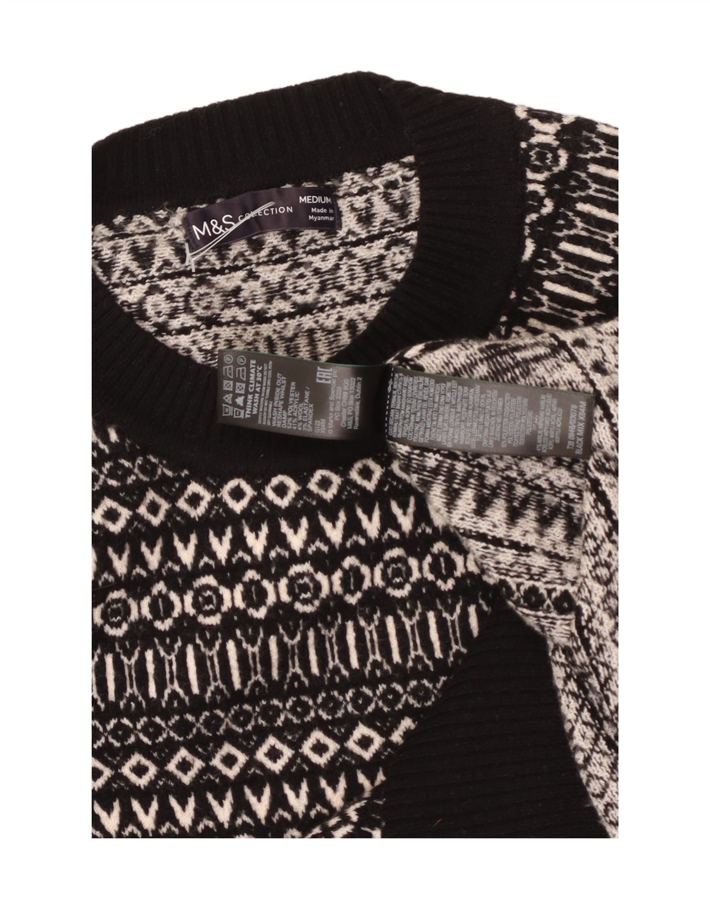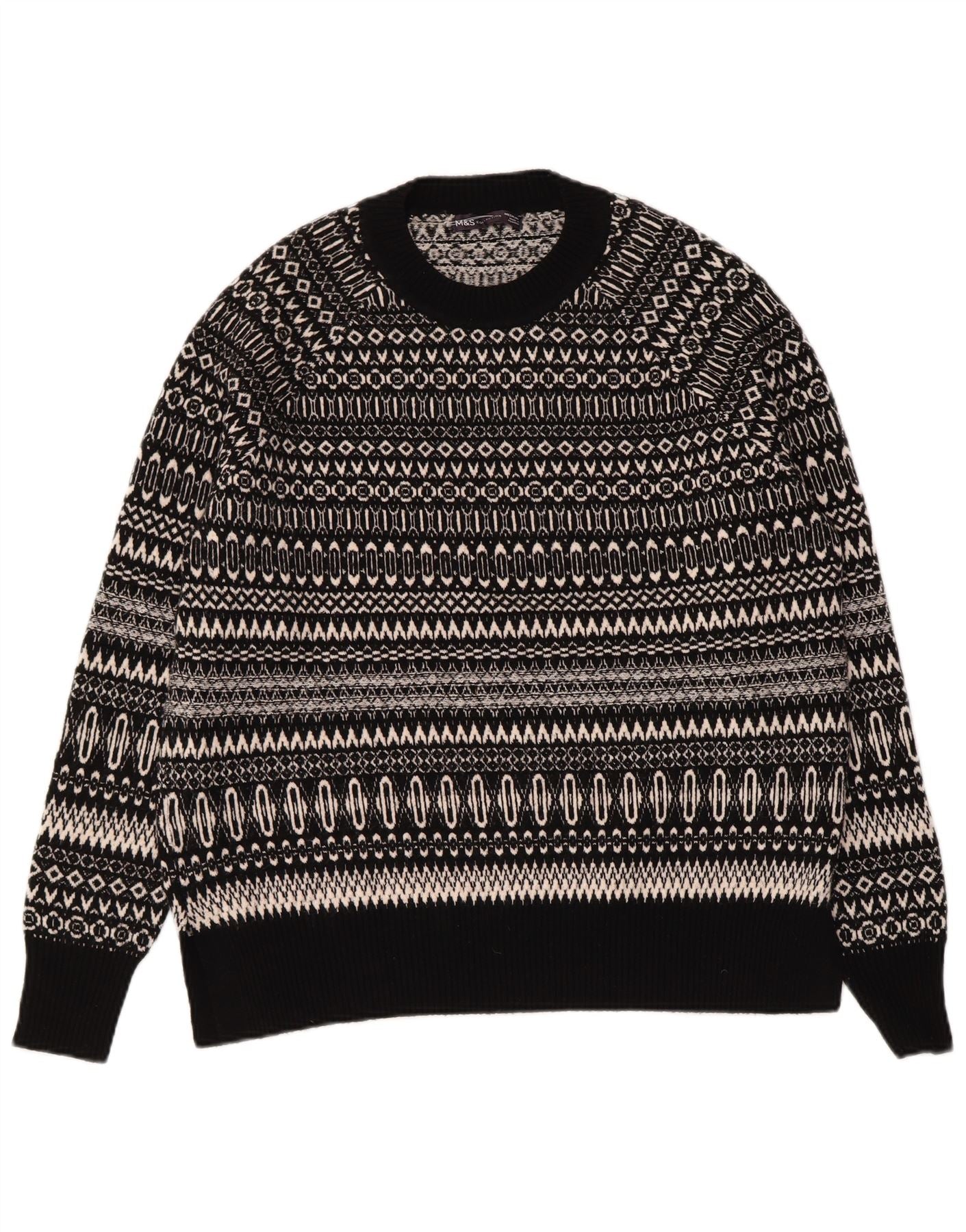 Ανδρικό πουλόβερ με λαιμόκοψη MARKS & SPENCER Medium Black Fair Isle