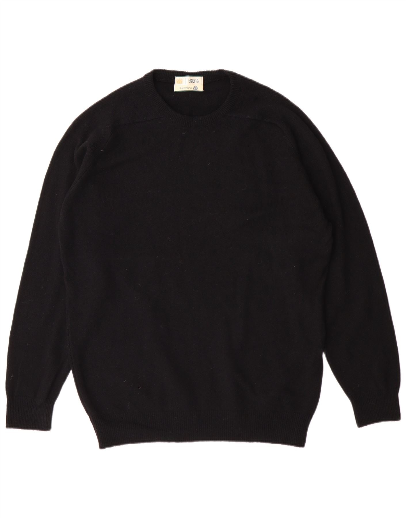 Marks & Spencer Ανδρικό πουλόβερ με λαιμόκοψη, μικρό μαύρο μαλλί αρνιού