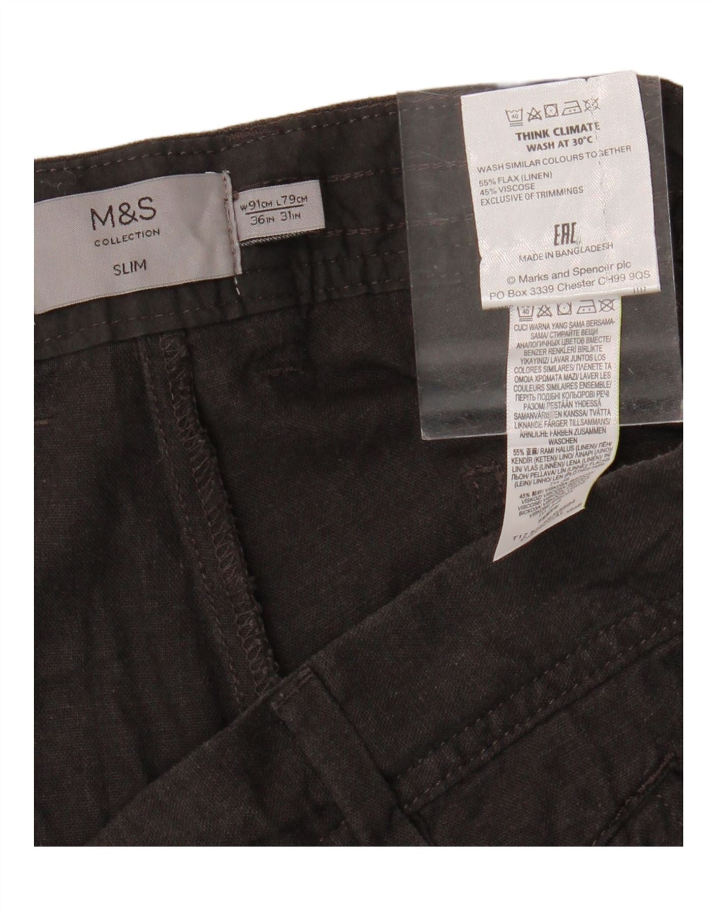 MARKS & SPENCER Ανδρικό λεπτό παντελόνι Chino W36 L25 Γκρι λινό