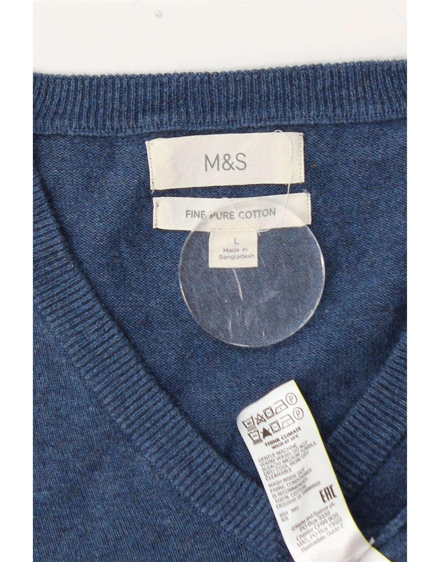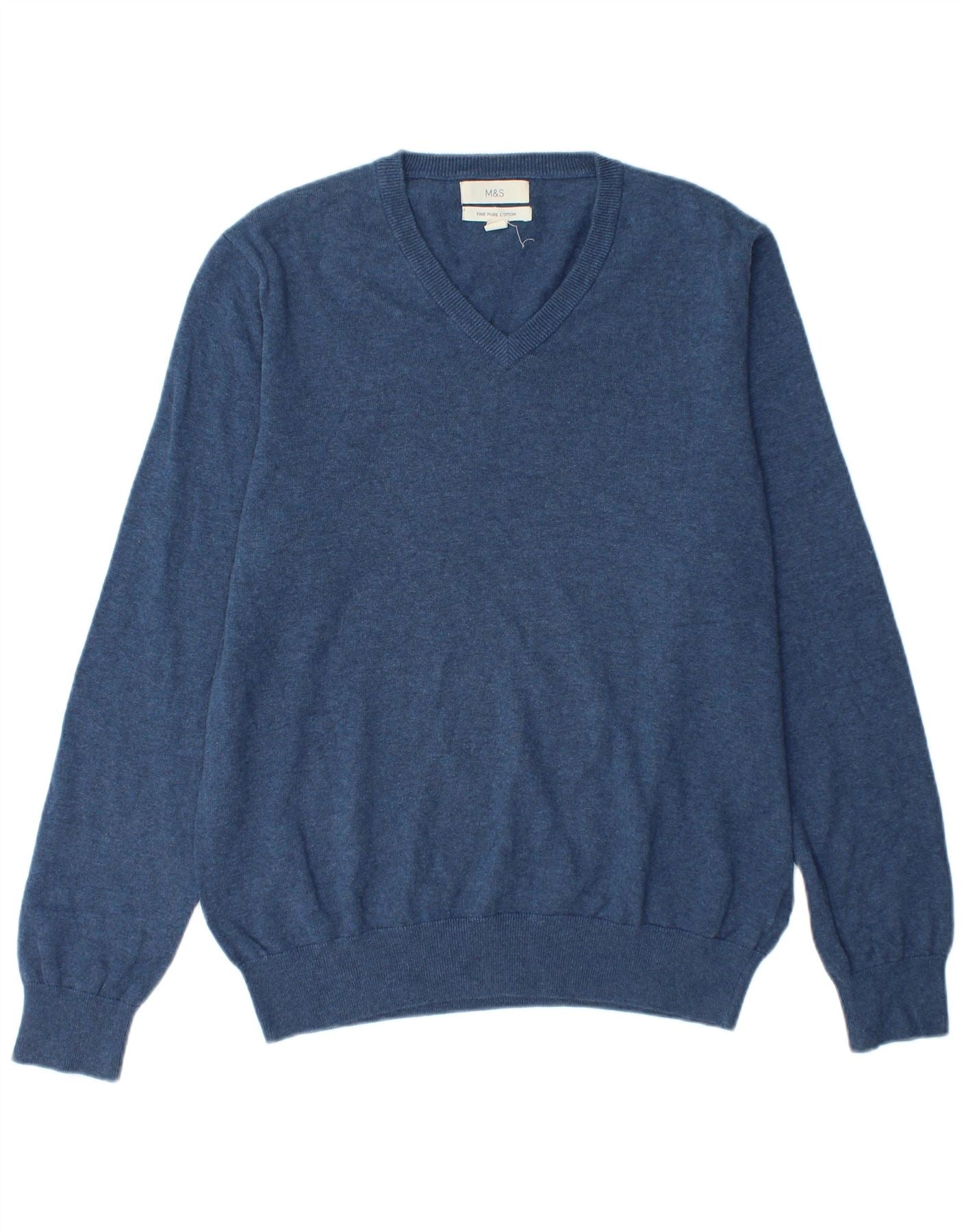 MARKS & SPENCER Ανδρικό πουλόβερ με λαιμόκοψη V-λαιμόκοψη μεγάλο μπλε βαμβακερό