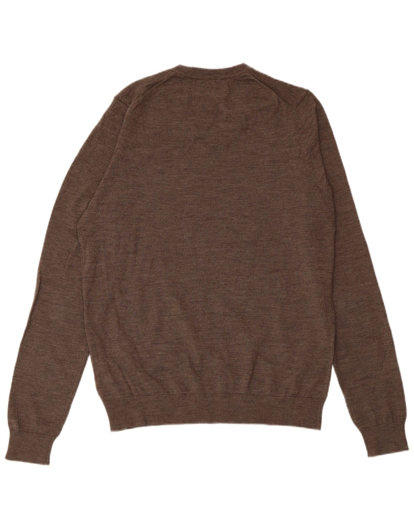 MARKS & SPENCER Ανδρικό πουλόβερ με λαιμόκοψη σε μεσαίο καφέ μαλλί Merino