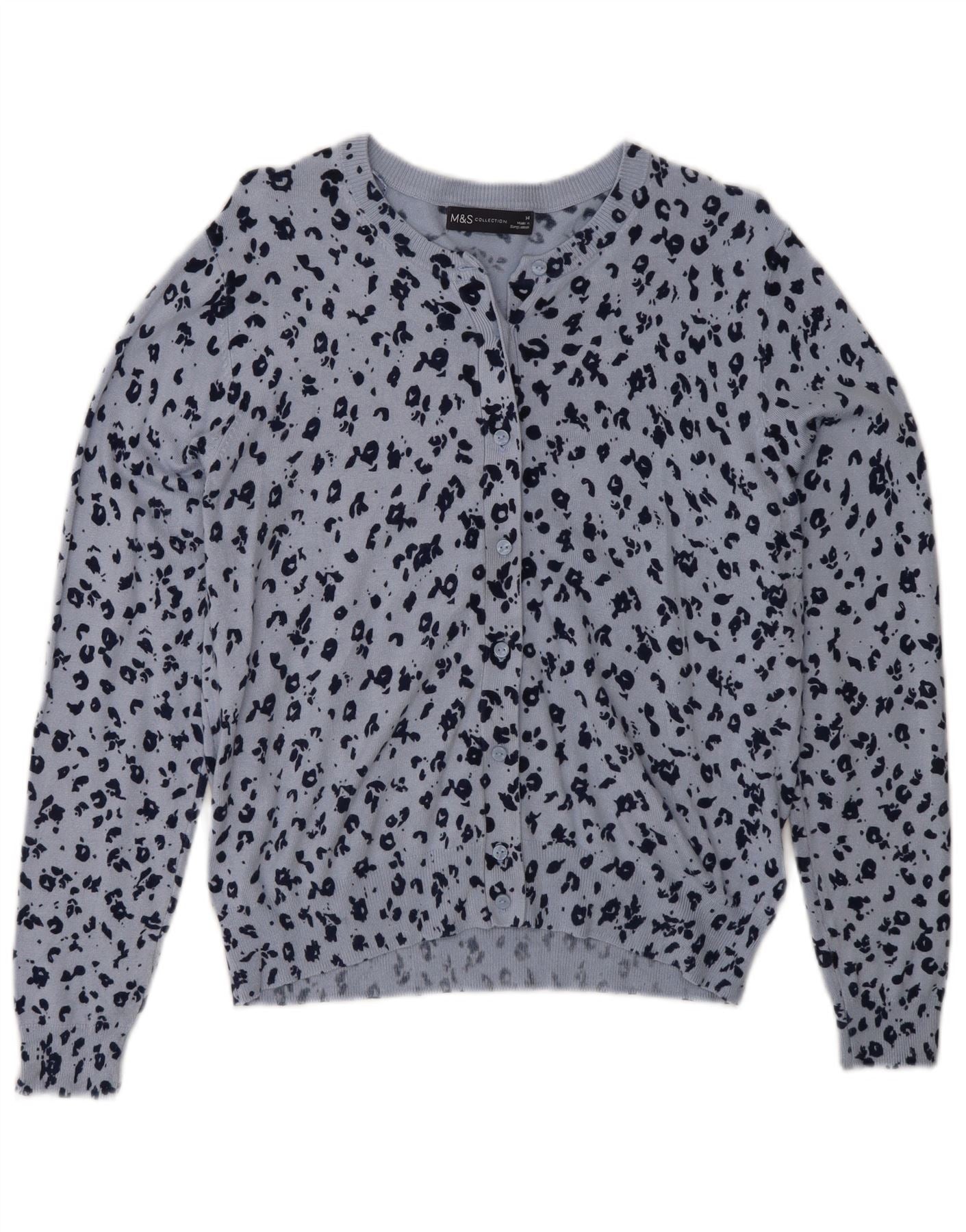 MARKS & SPENCER Γυναικείο πουλόβερ ζακέτα UK 14 Medium Blue Animal Print