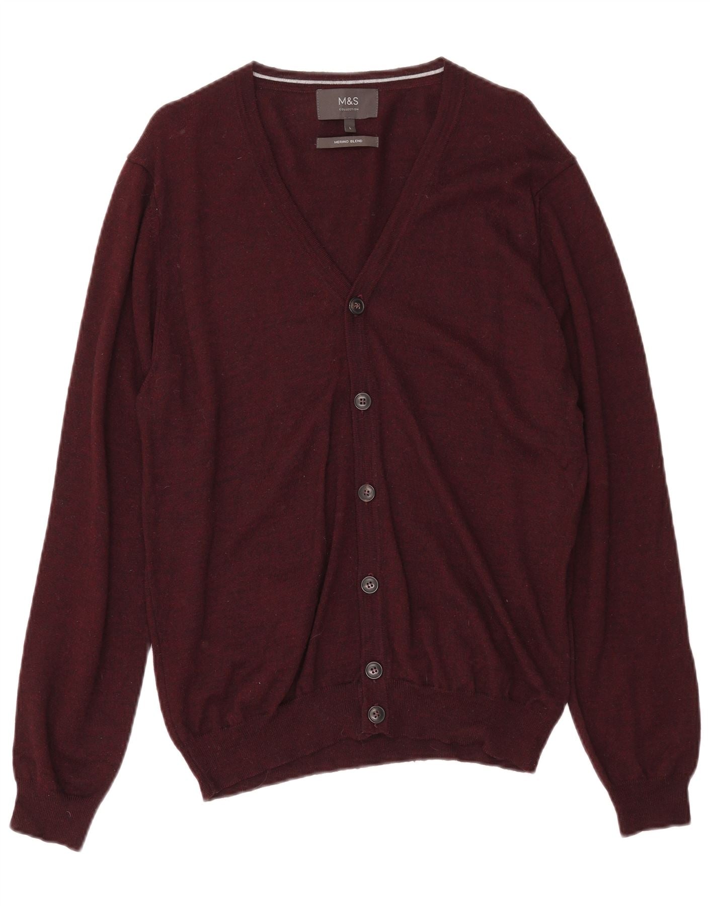 MARKS & SPENCER Γυναικείο πουλόβερ ζακέτα UK 16 Μεγάλο μπορντό μαλλί
