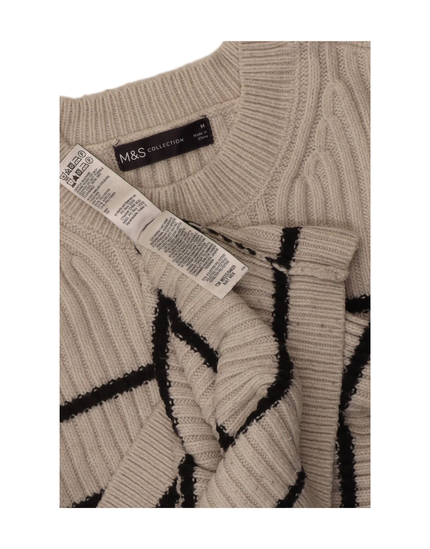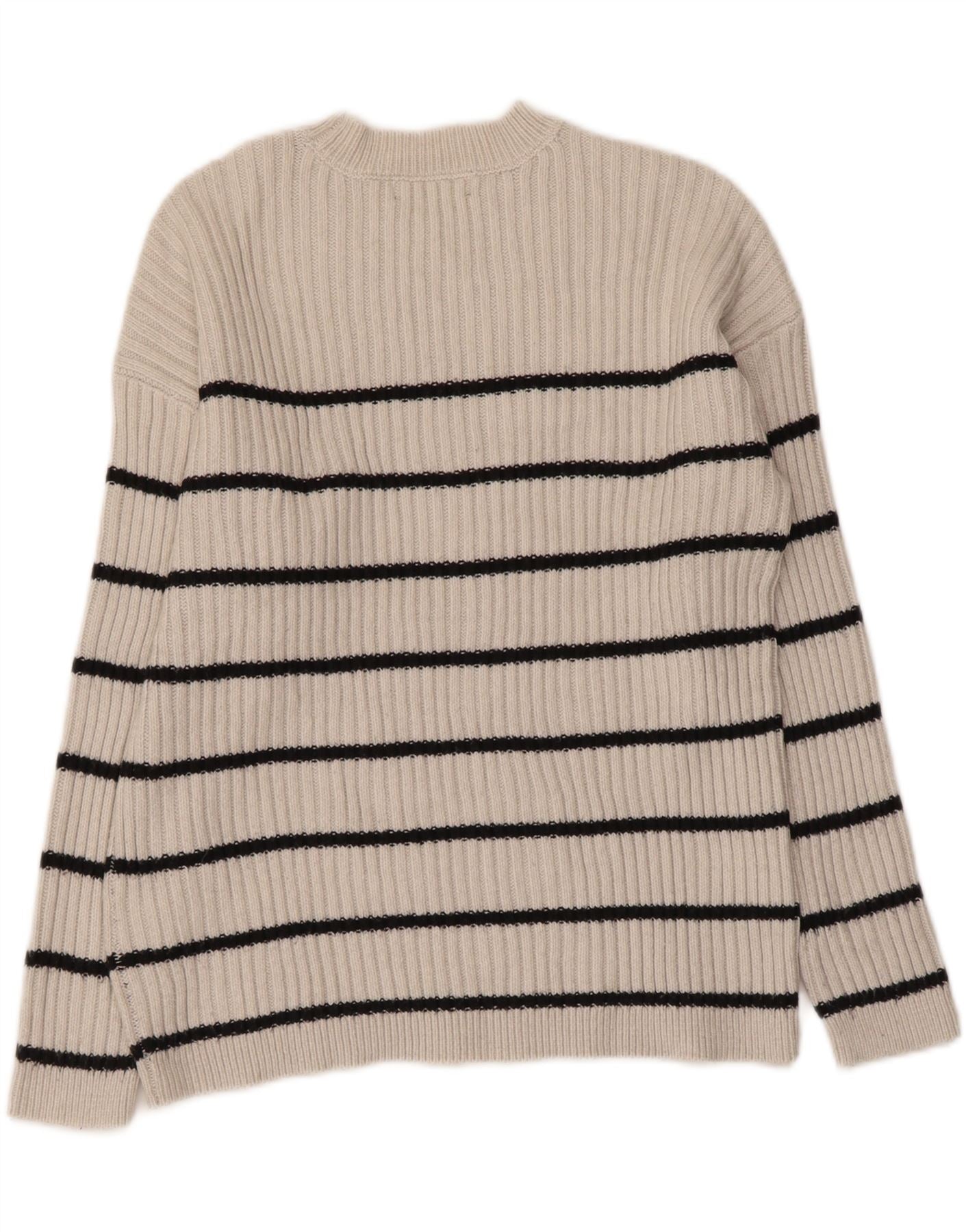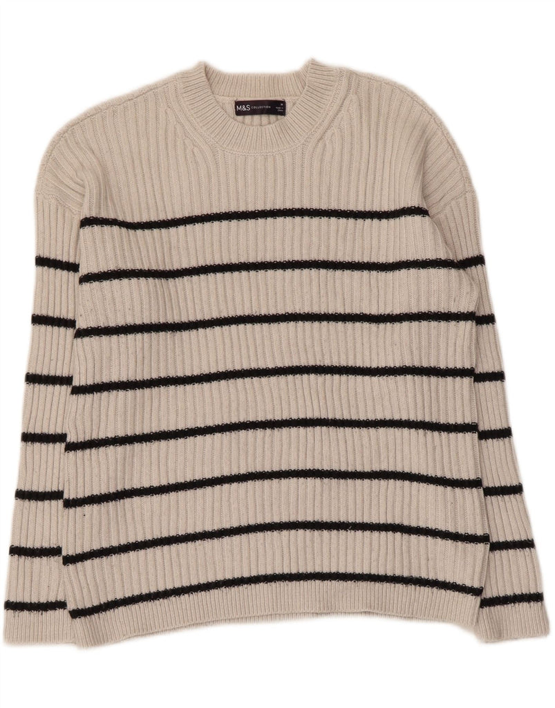 MARKS & SPENCER Womens Crew Neck Jumper Sweater UK 14 Medium Grey Striped