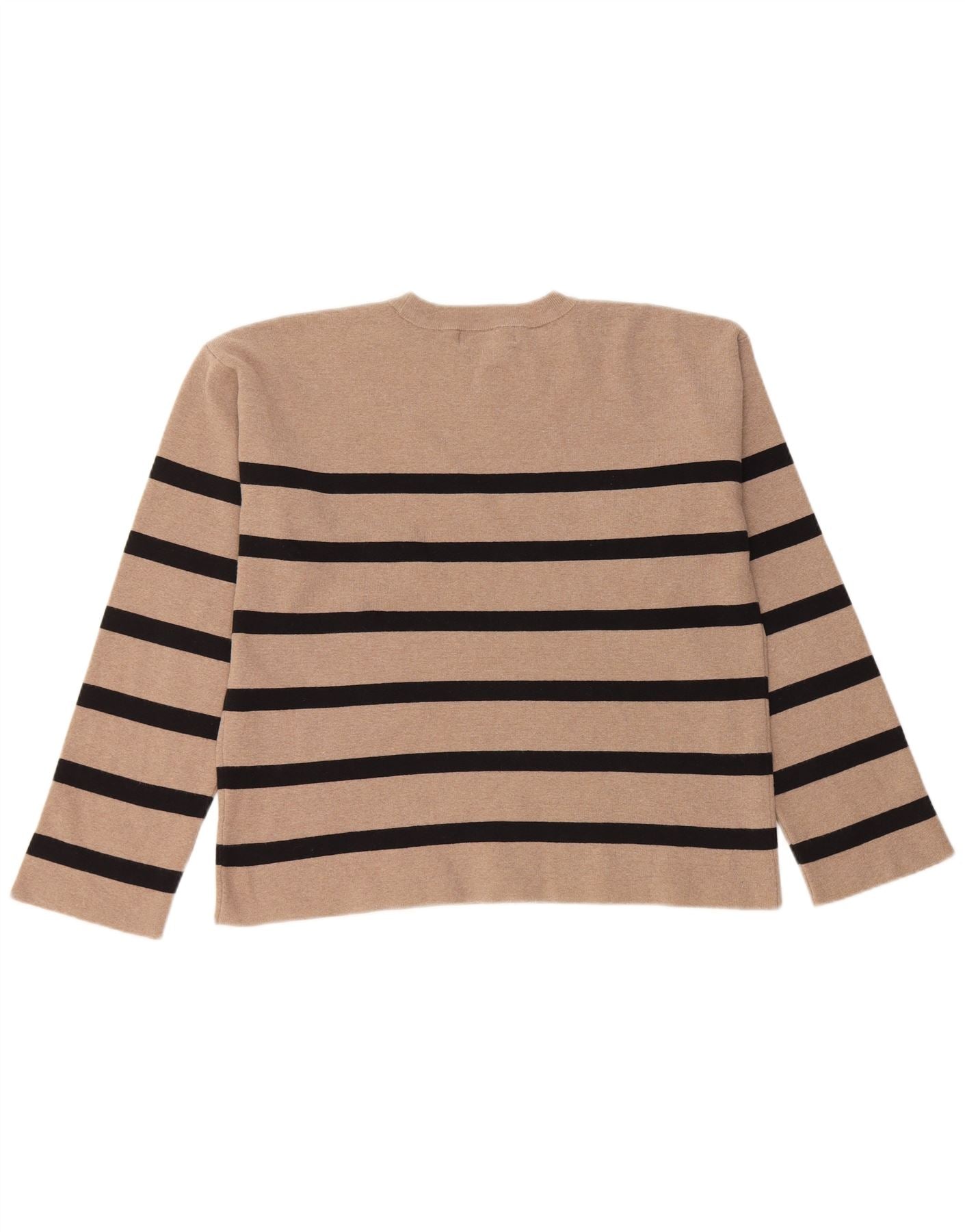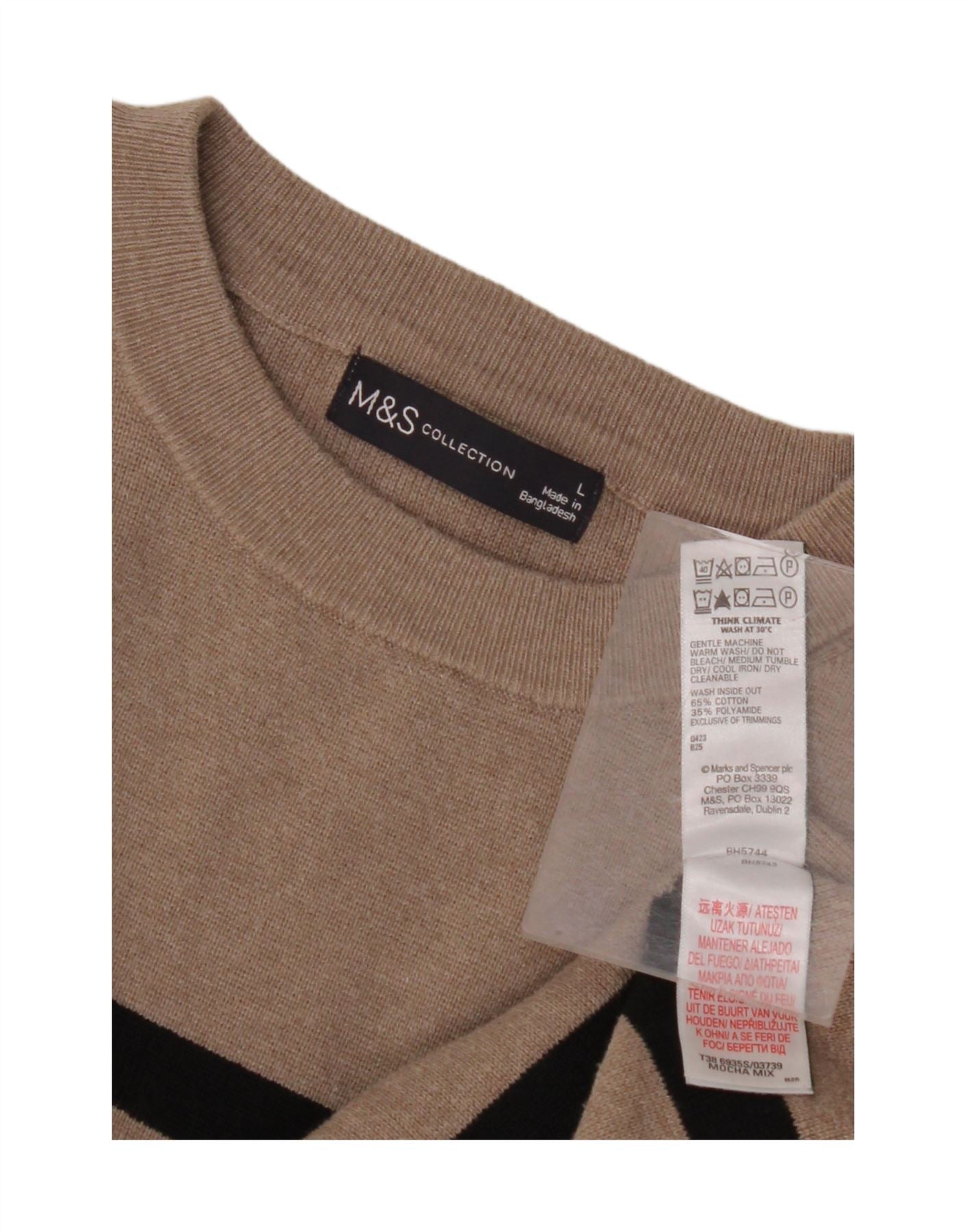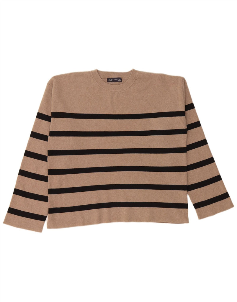 MARKS & SPENCER Γυναικείο πουλόβερ με λαιμόκοψη UK 16 μεγάλο μπεζ ριγέ