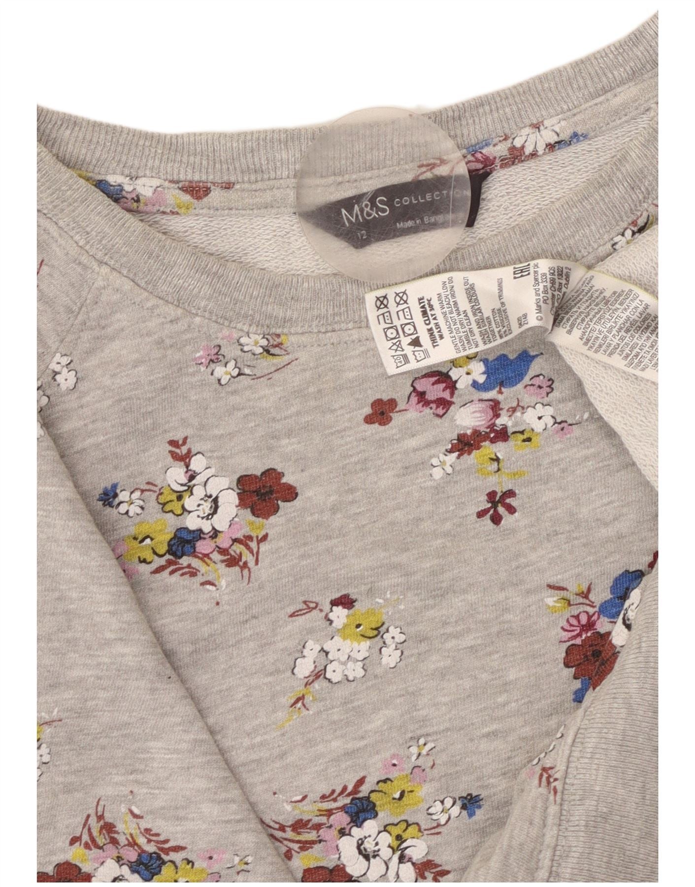 MARKS & SPENCER Γυναικεία φούτερ Crop Jumper UK 12 Medium Grey Floral