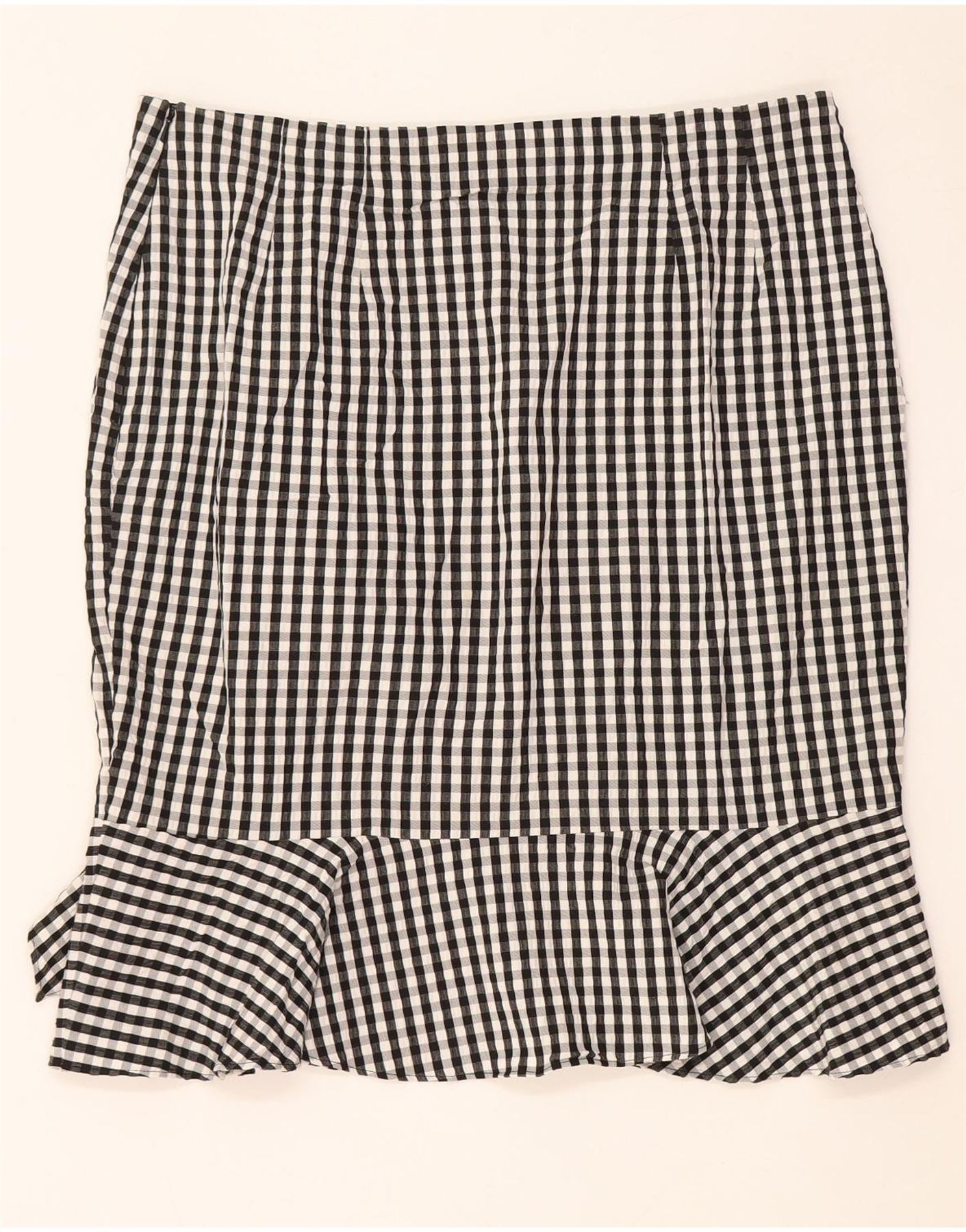 Marks & Spencer γυναικεία βολάν φούστα UK 16 μεγάλη W34 μαύρη βισκόζη Gingham