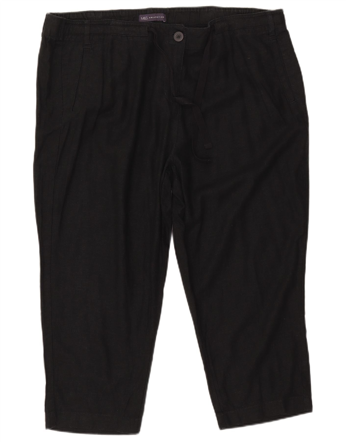 Marks & Spencer Γυναικείο λεπτό παντελόνι Capri UK 20 2XL W40 L22 Μαύρο λινό