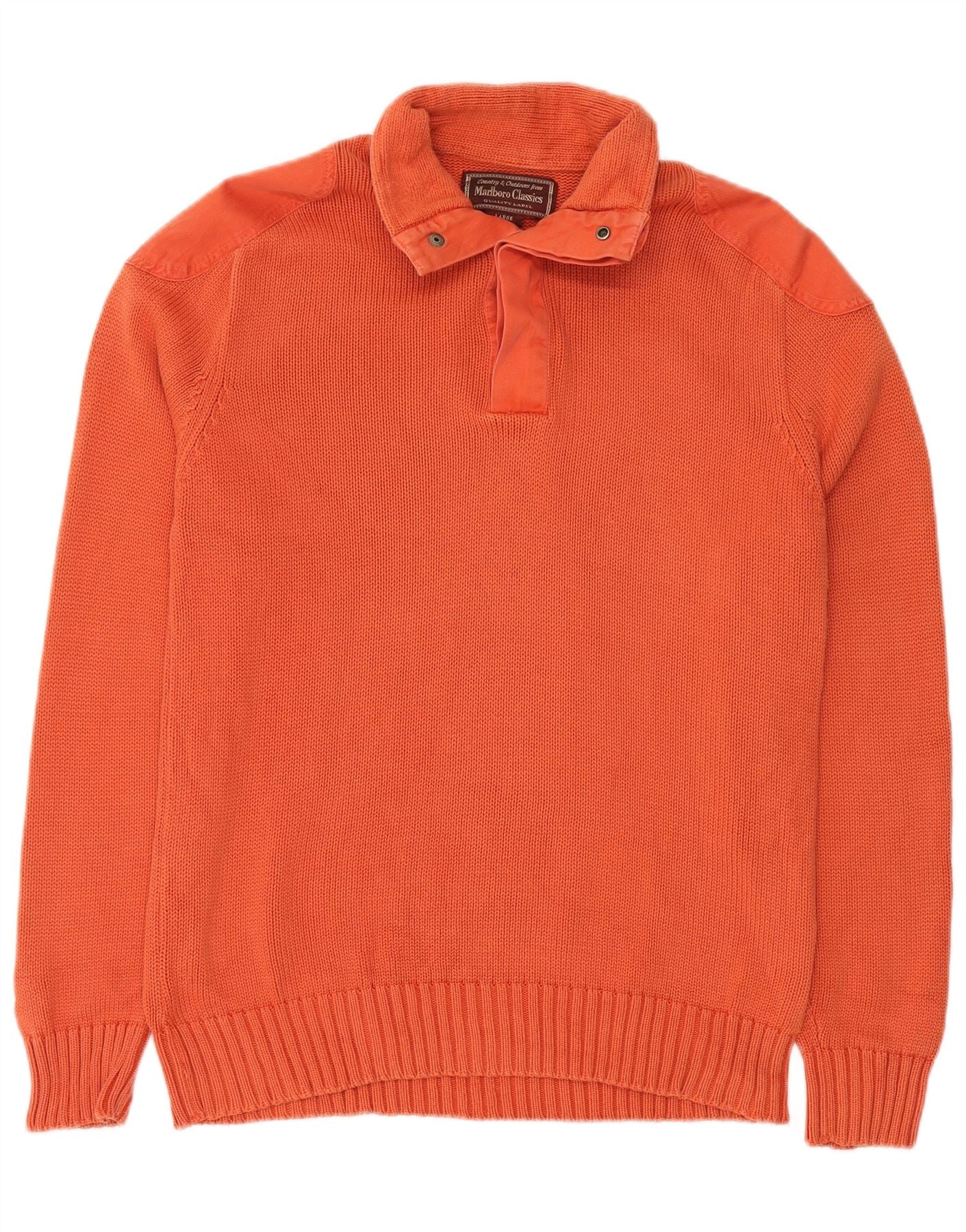 Ανδρικό πουλόβερ Marlboro Classics με κουμπιά για λαιμό, μεγάλο πορτοκαλί βαμβακερό