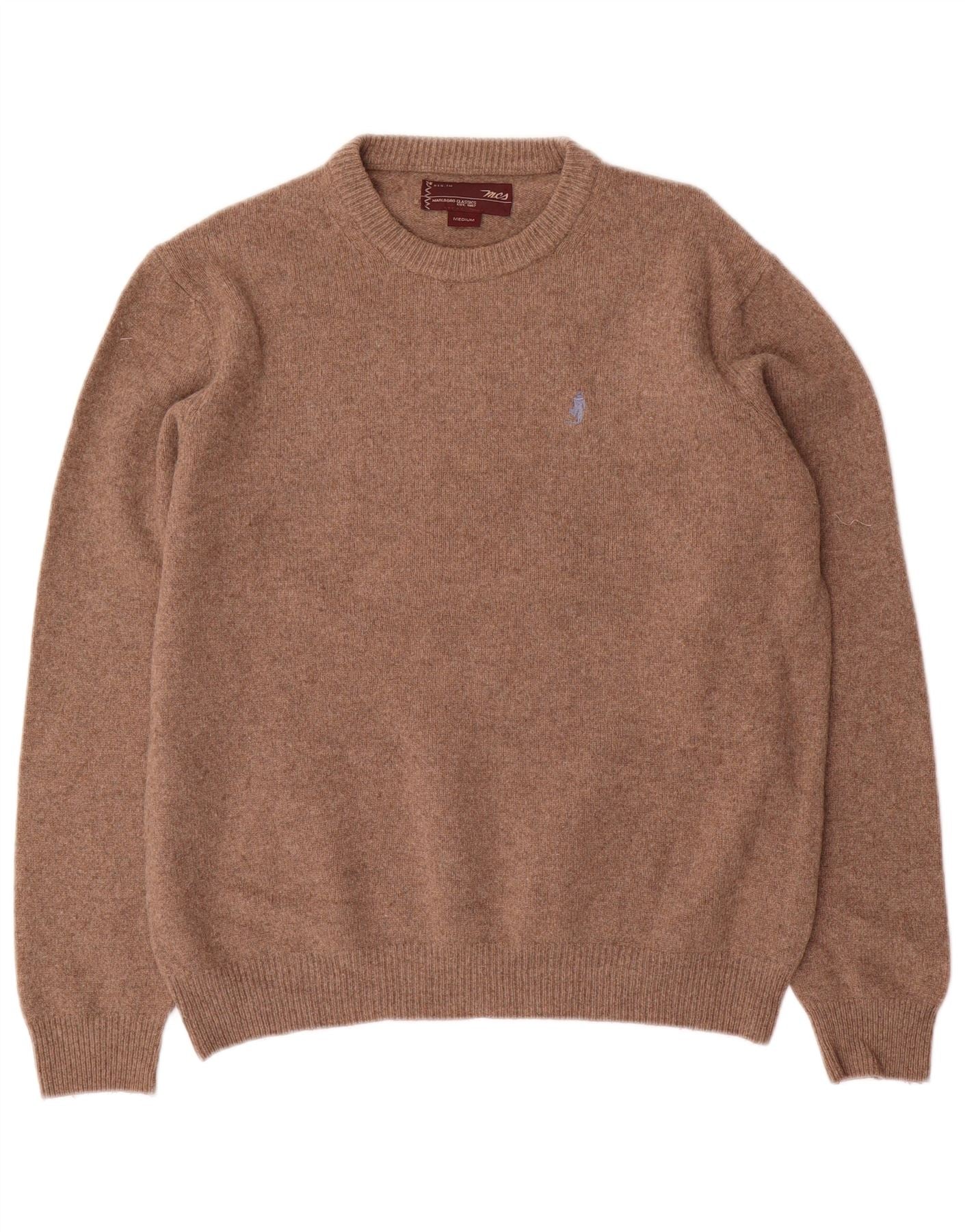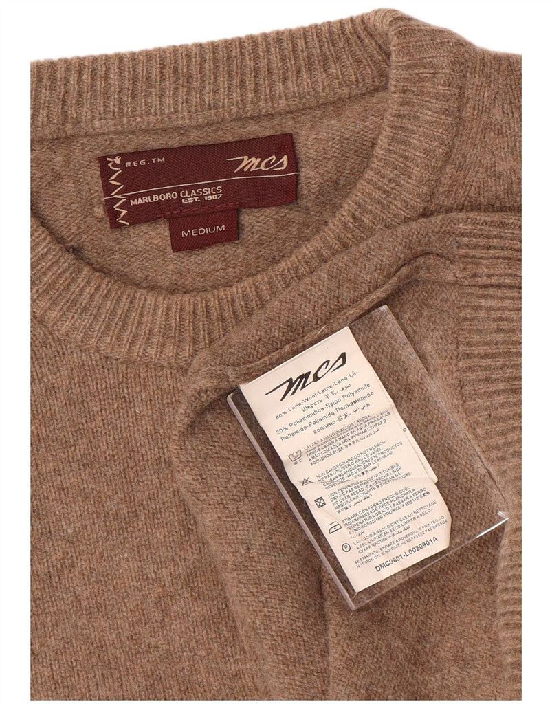 Πουλόβερ MARLBORO CLASSICS Ανδρικό πουλόβερ με λαιμόκοψη μεσαίου καφέ μαλλί