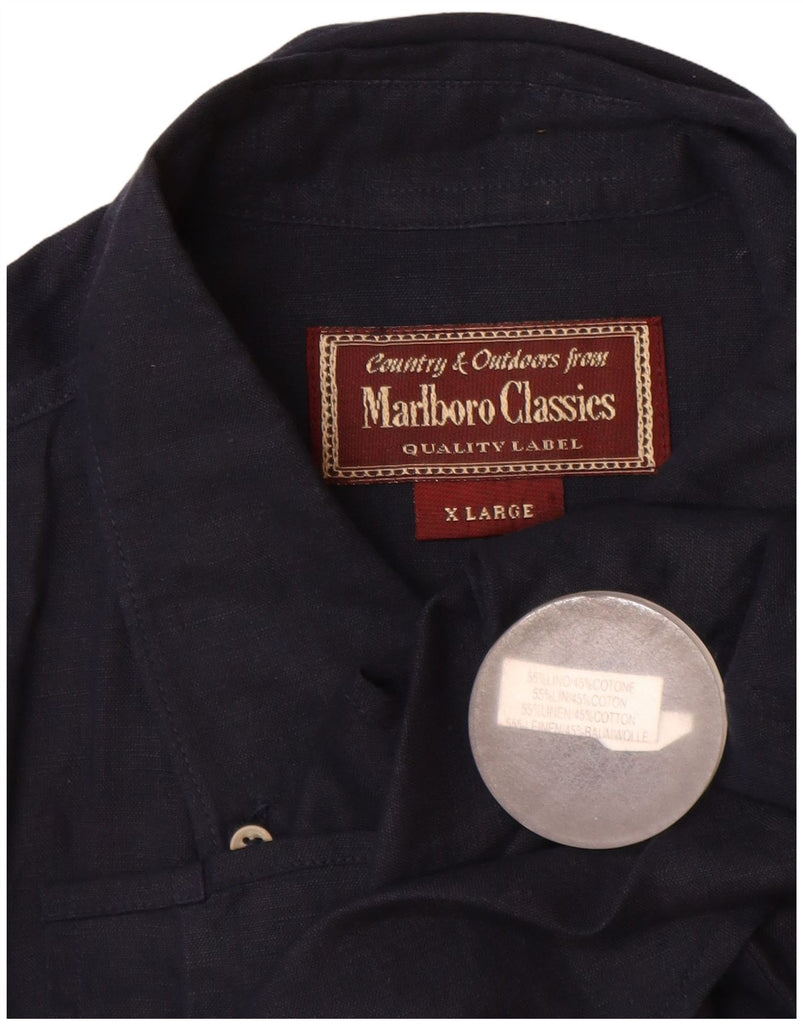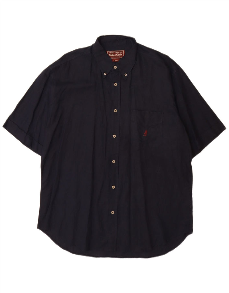 MARLBORO CLASSICS Ανδρικό κοντομάνικο πουκάμισο XL Navy μπλε λινό