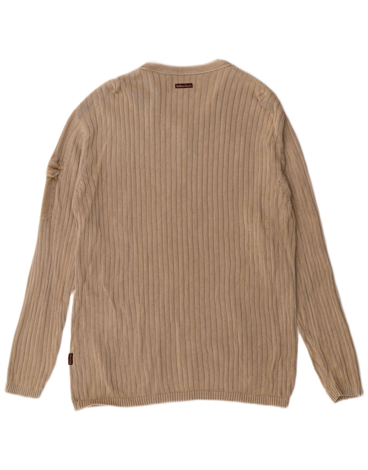 Marlboro Classics Ανδρικό πουλόβερ με λαιμόκοψη V-λαιμόκοψη Μεγάλο μπεζ βαμβακερό κλασικό