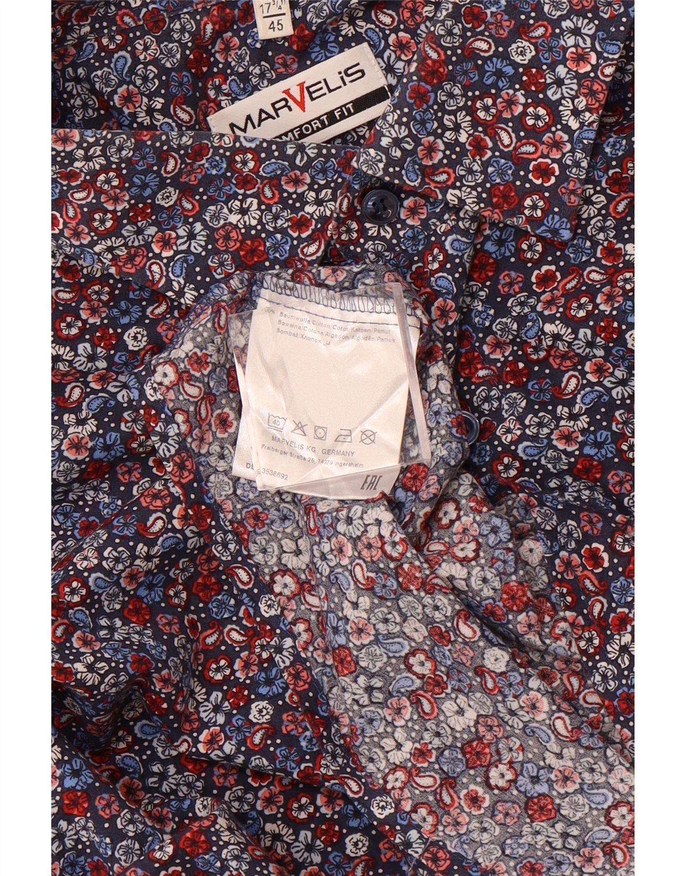 MARVELIS Mens Comfort Fit Shirt Size 17 3/4 45 XL Navy Blue Floral Cotton
