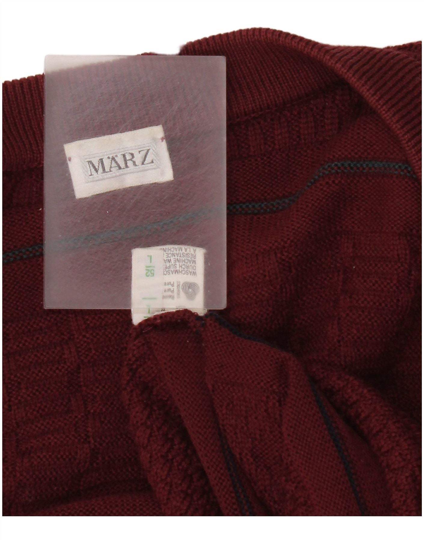 Marz Ανδρικό πουλόβερ ζακέτα EU 52 Μεγάλο μπορντό ριγέ νέο μαλλί