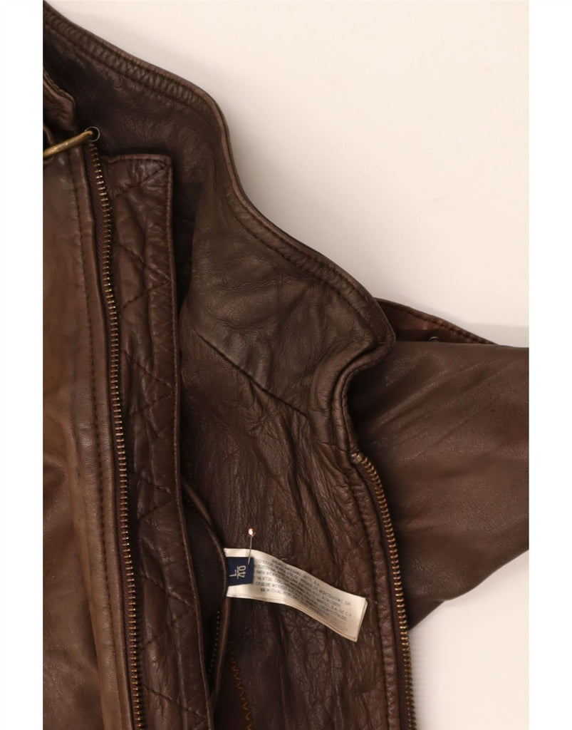 MASSIMO DUTTI Mens Bomber Leather Jacket UK 40 Large Brown Leather