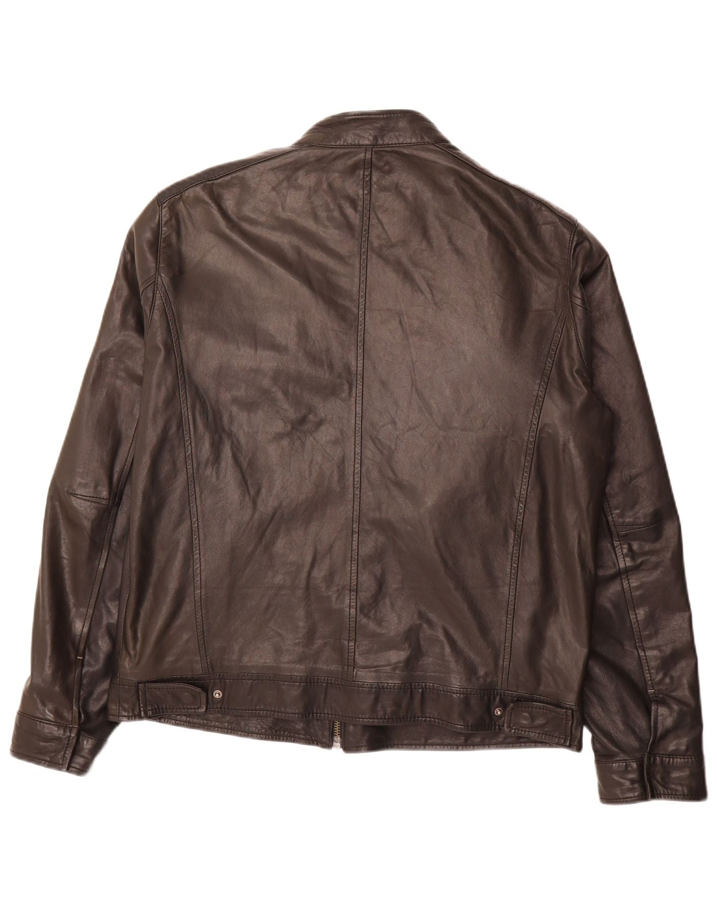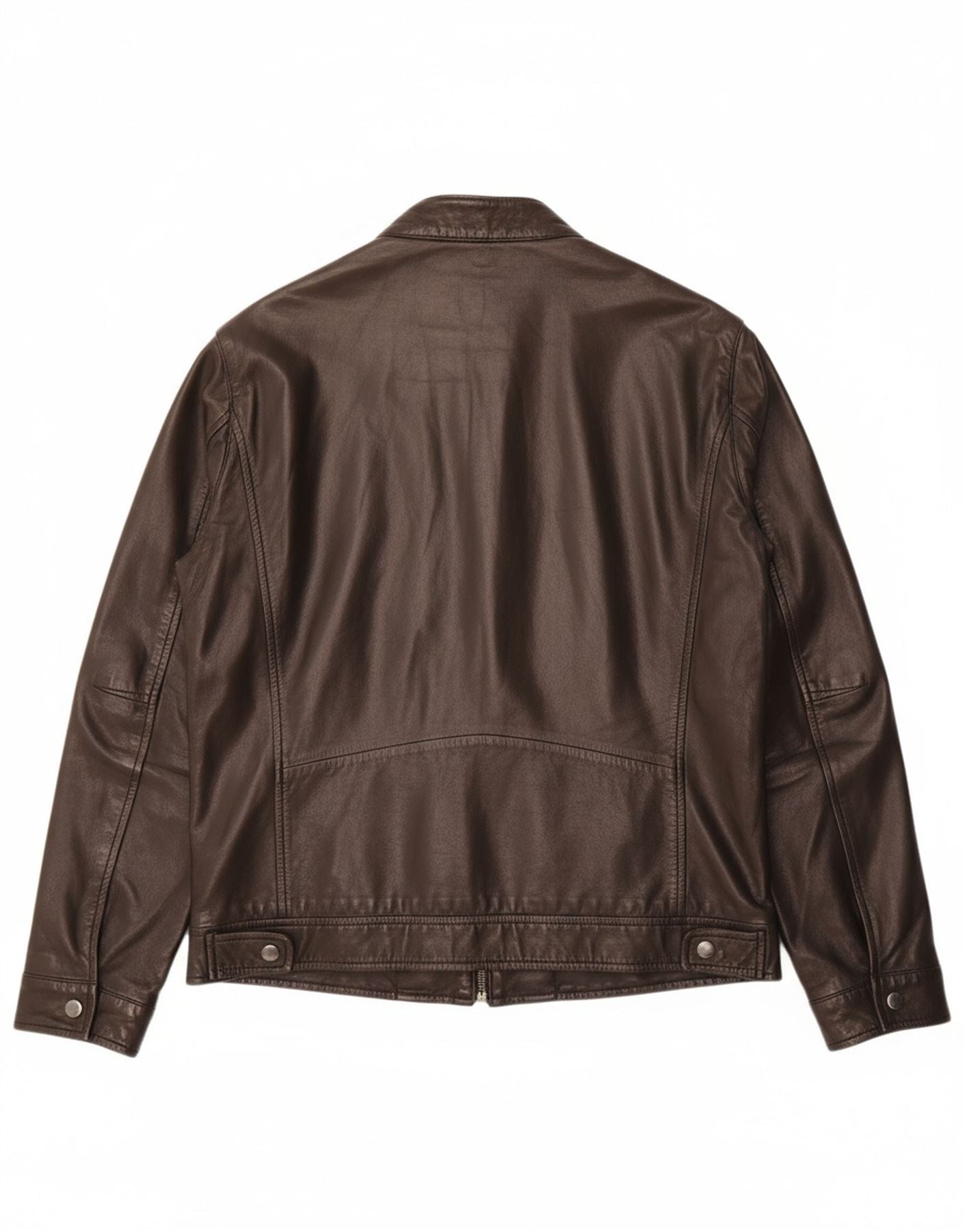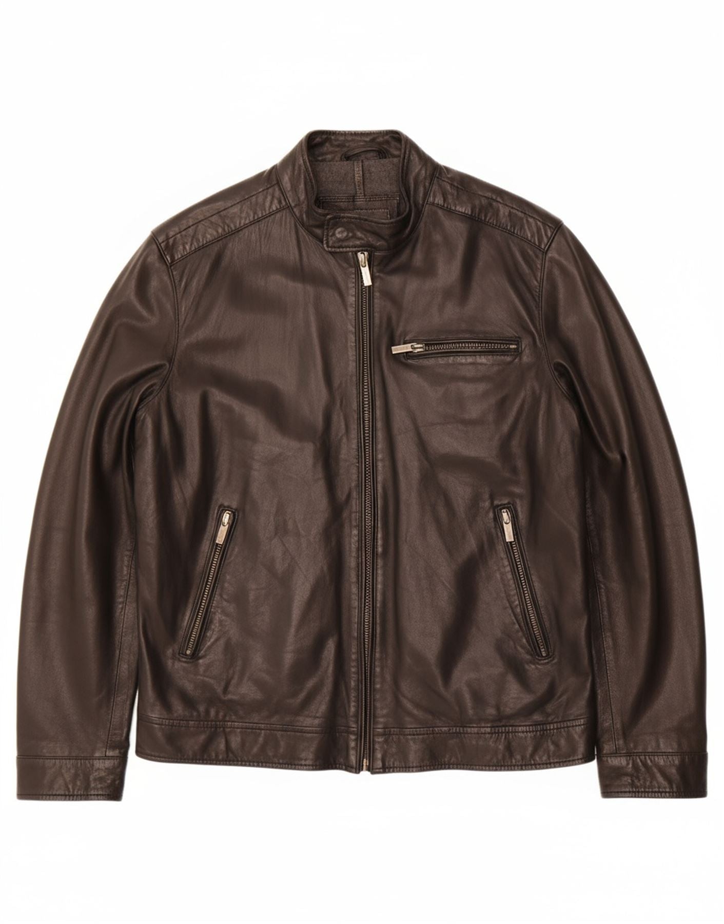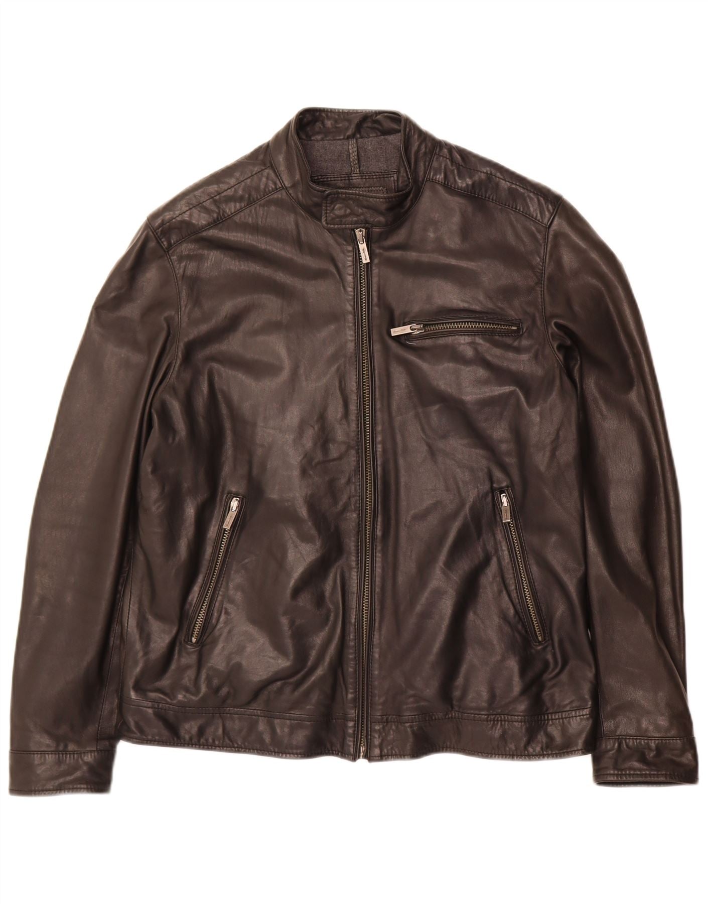 MASSIMO DUTTI Mens Leather Jacket EU 42 Large Black Leather Biker