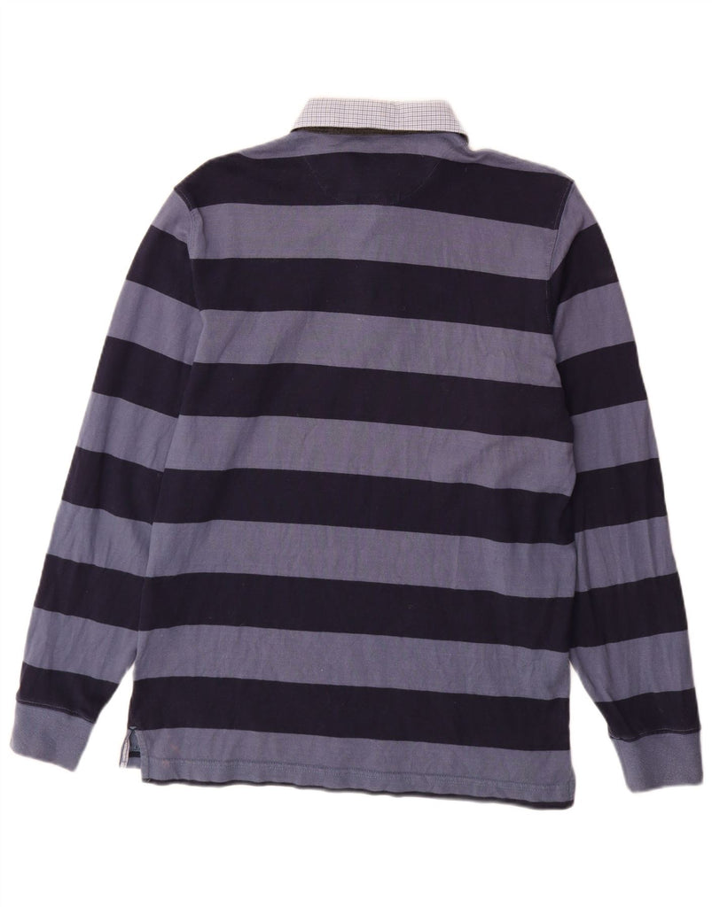 MASSIMO DUTTI Mens Long Sleeve Rugby Polo Shirt Medium Navy Blue Striped