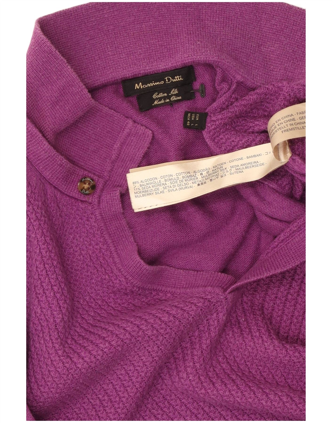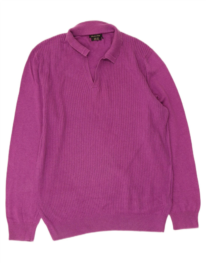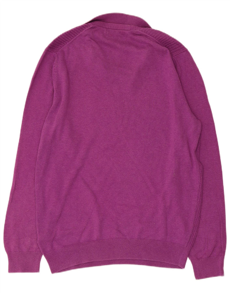 MASSIMO DUTTI Mens Polo Neck Jumper Sweater Large Purple Cotton