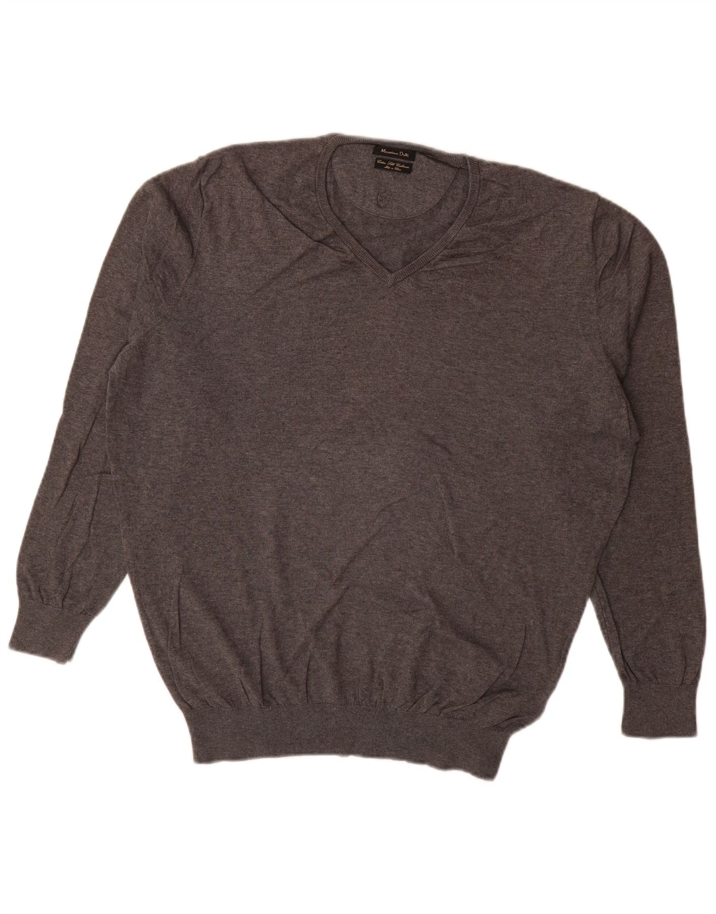 MASSIMO DUTTI Ανδρικό πουλόβερ με V λαιμόκοψη XL Γκρι βαμβακερό