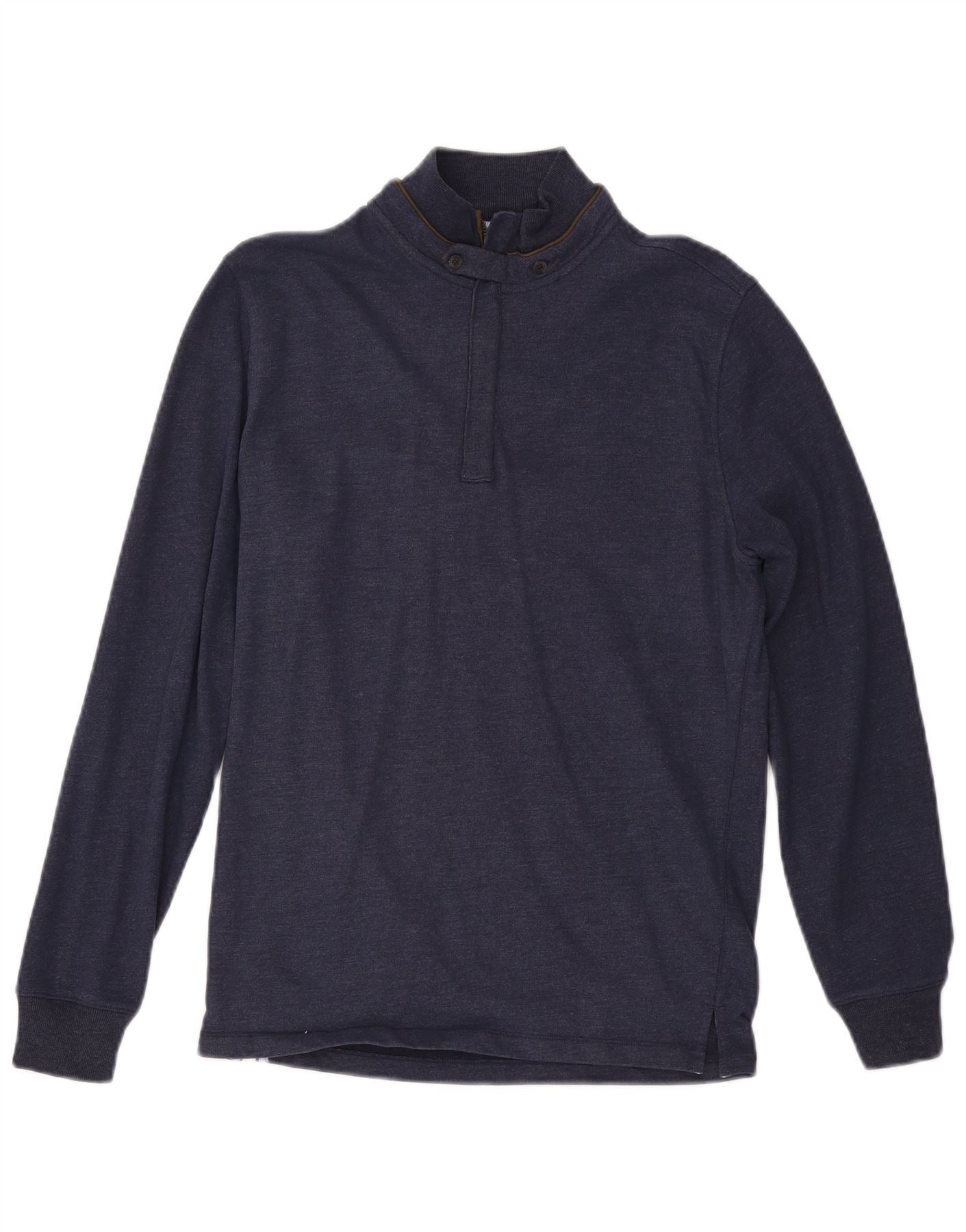 MASSIMO DUTTI Ανδρικό μπλουζάκι με φερμουάρ με μακρυμάνικο μεσαίο μπλε βαμβακερό