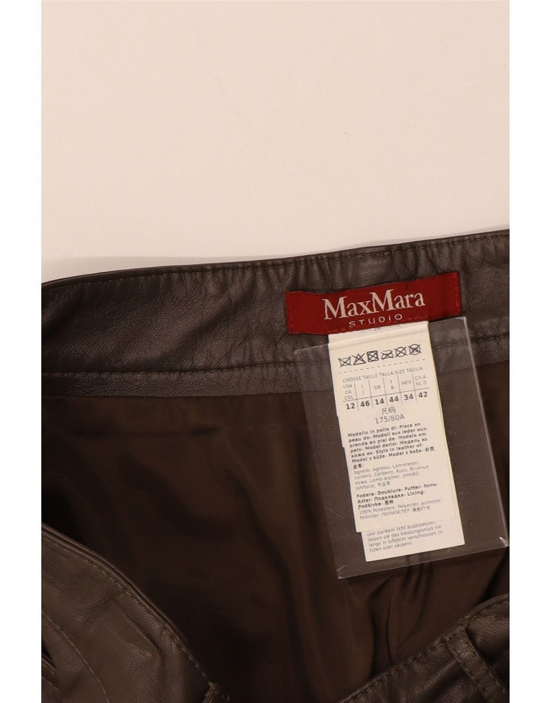 MAX MARA Womens Straight Faux Trousers UK 14 Large W34 L31 Brown Leather