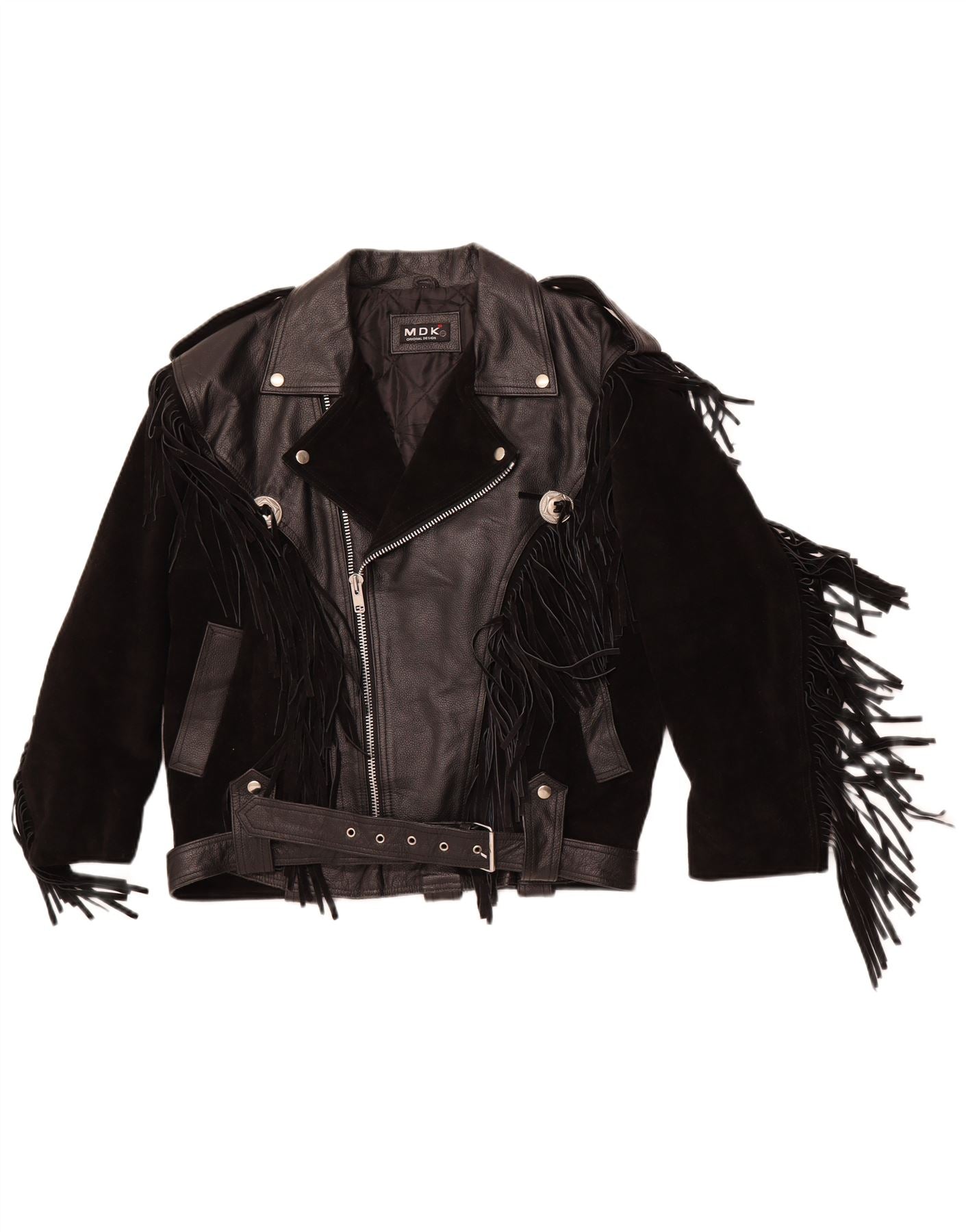 MDK Γυναικείο Western Loose Fit Leather Biker Jacket UK 14 Medium Black