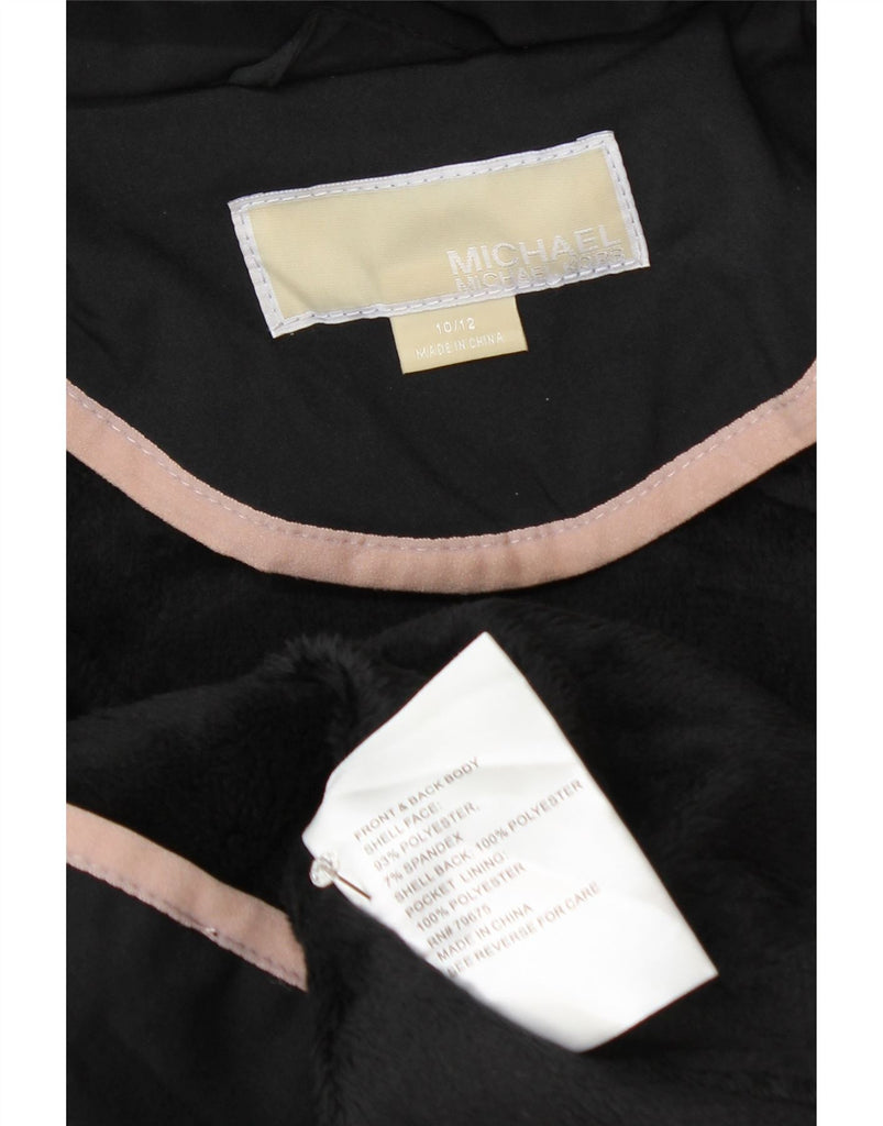 MICHAEL KORS Girls Hooded Windbreaker Jacket 10-11 Years Black Polyester