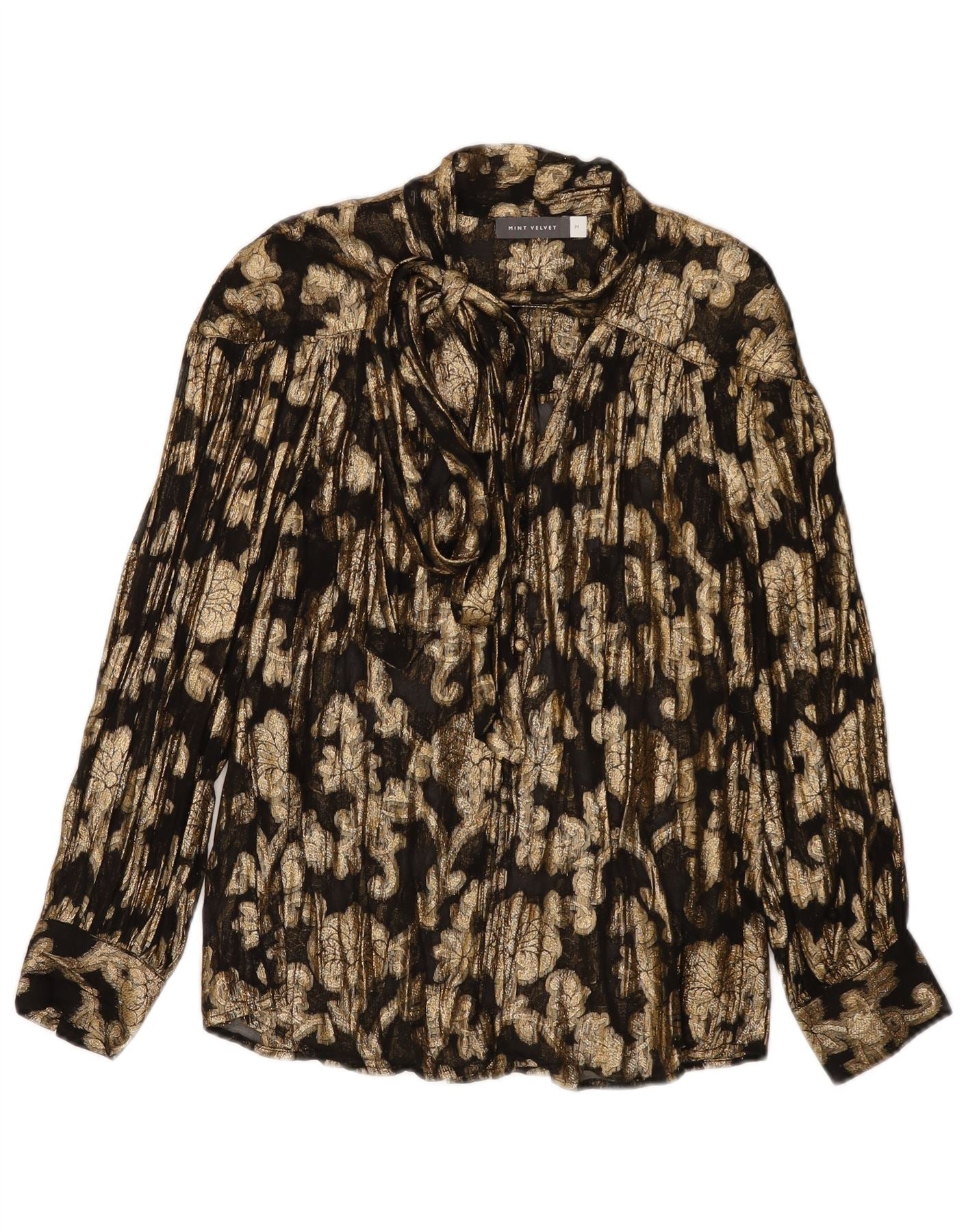 Γυναικείο πουκάμισο με γραβάτα MINT VELVET μπλούζα UK 14 μεσαία χρυσή φλοράλ βισκόζη