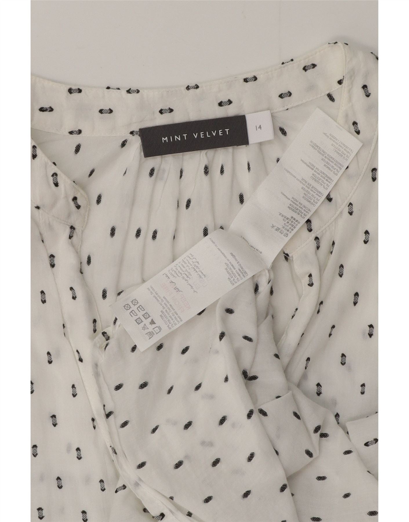 Γυναικείο γραφικό πουκάμισο MINT VELVET Μπλούζα UK 14 μεγάλο λευκό βαμβακερό φλοράλ