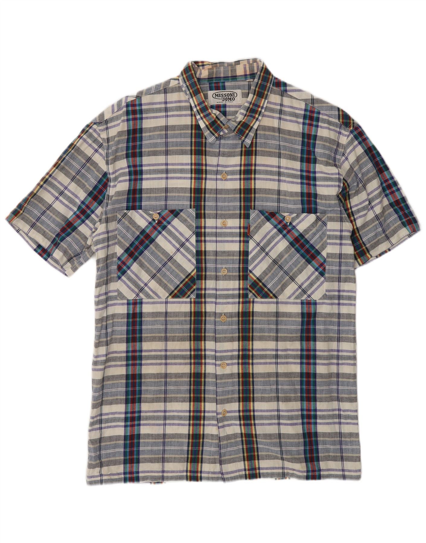 - Περιγραφή AI: Αυτό το ανδρικό πουκάμισο Missoni Uomo είναι κατασκευασμένο από 100 βαμβακερά υφάσματα, προσφέροντας άνετη αίσθηση. Διαθέτει ένα ζωντανό πολύχρωμο μοτίβο ελέγχου, που συνδυάζει λευκούς, μπλε, κόκκινους, γκρι, κίτρινους και πράσινους τόνους. Η λαιμόκοψη με γιακά και το μπροστινό μέρος με κουμπιά προσφέρουν μια κλασική εμφάνιση. Τα κοντά μανίκια και η κανονική εφαρμογή εξασφαλίζουν ευκολία στη χρήση. Δύο τσέπες στο στήθος προσθέτουν πρακτικές λεπτομέρειες στο σχέδιο, ολοκληρώνοντας αυτό το κομψό κομμάτι.