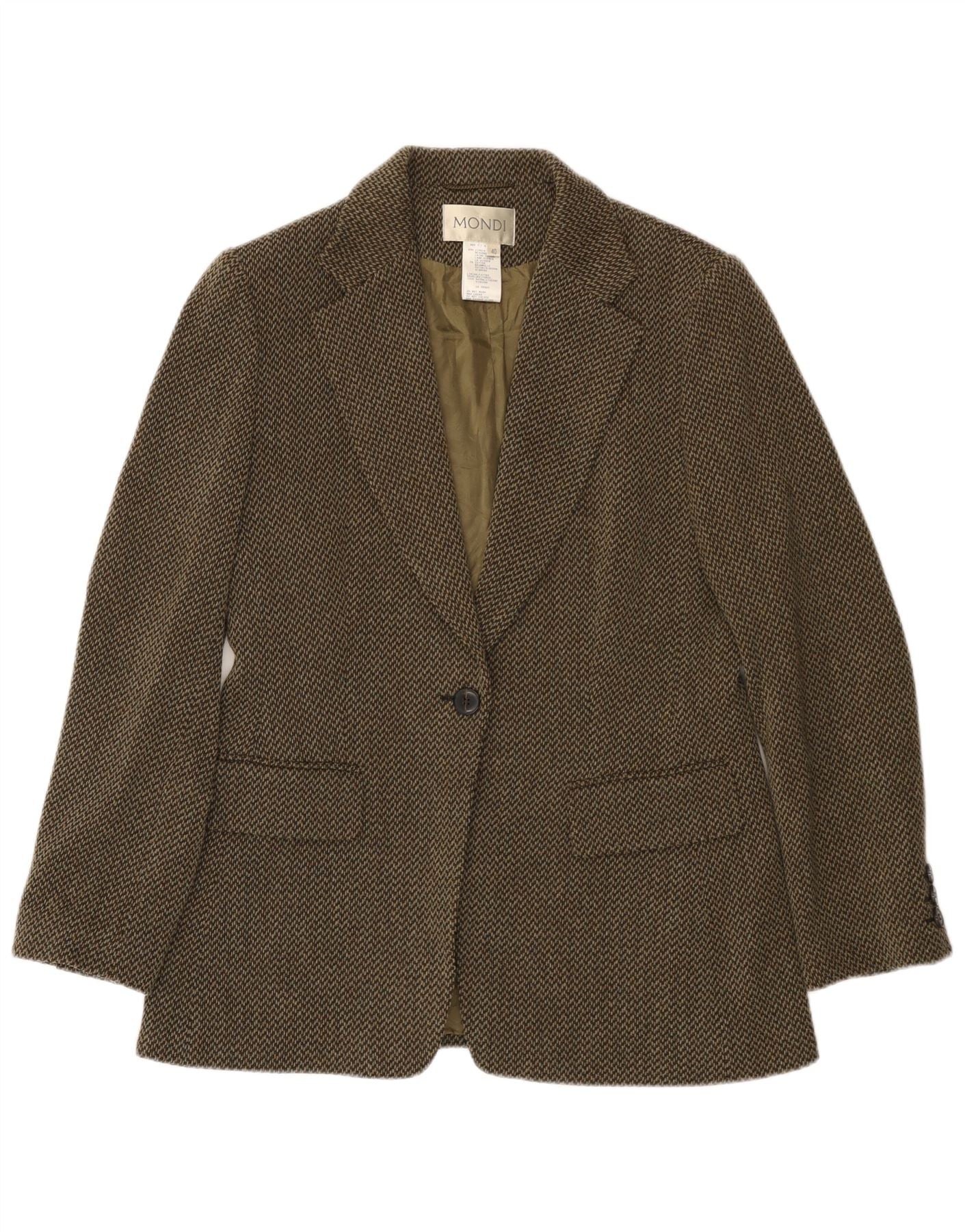 MONDI Γυναικείο σακάκι σακάκι με 1 κουμπί EU 40 Μεσαίο πράσινο Chevron παρθένο μαλλί