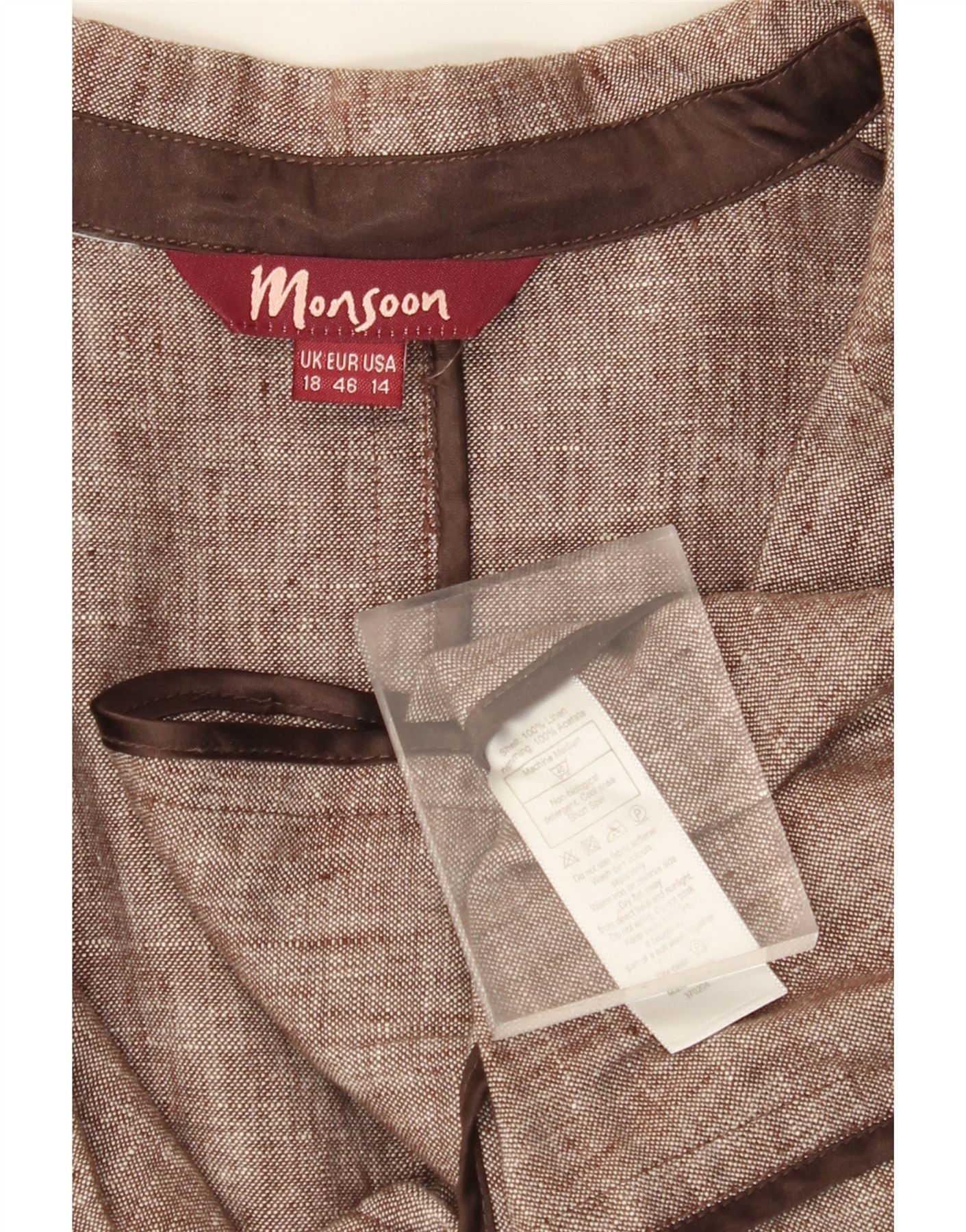 MONSOON Womens 2 Button Blazer Jacket UK 18 XL Brown Linen