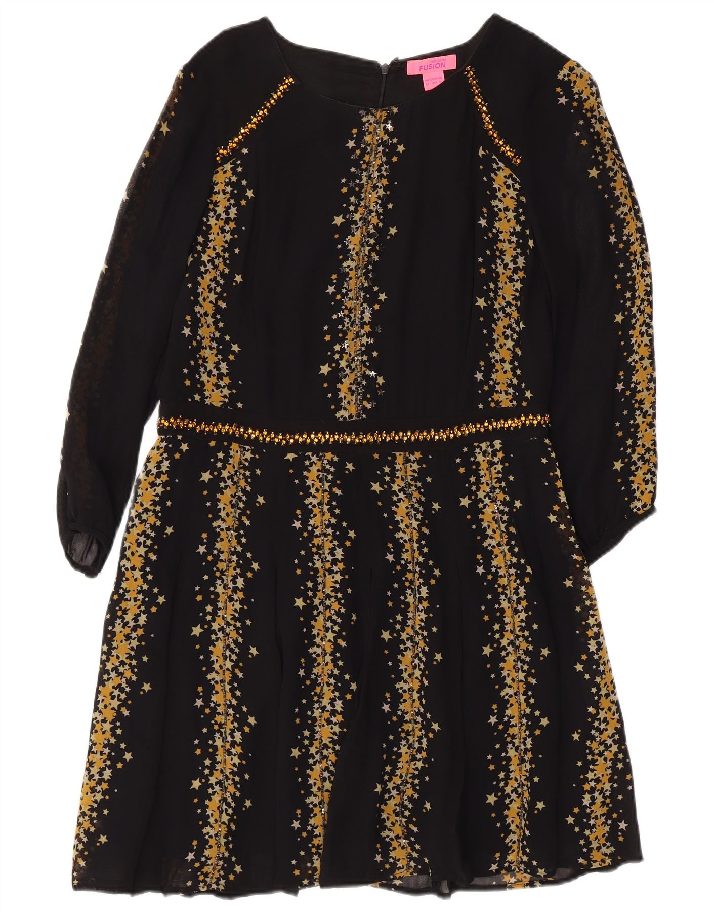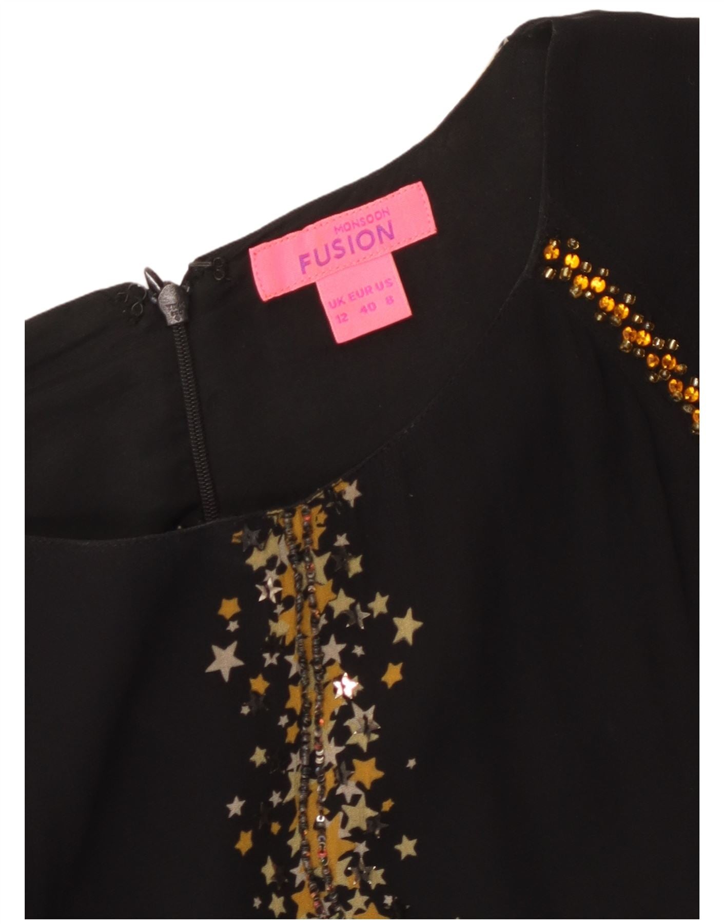Γυναικείο αφηρημένο μοτίβο MONSOON 3/4 Φόρεμα Α-γραμμής με μανίκια UK 12 μεσαίο μαύρο