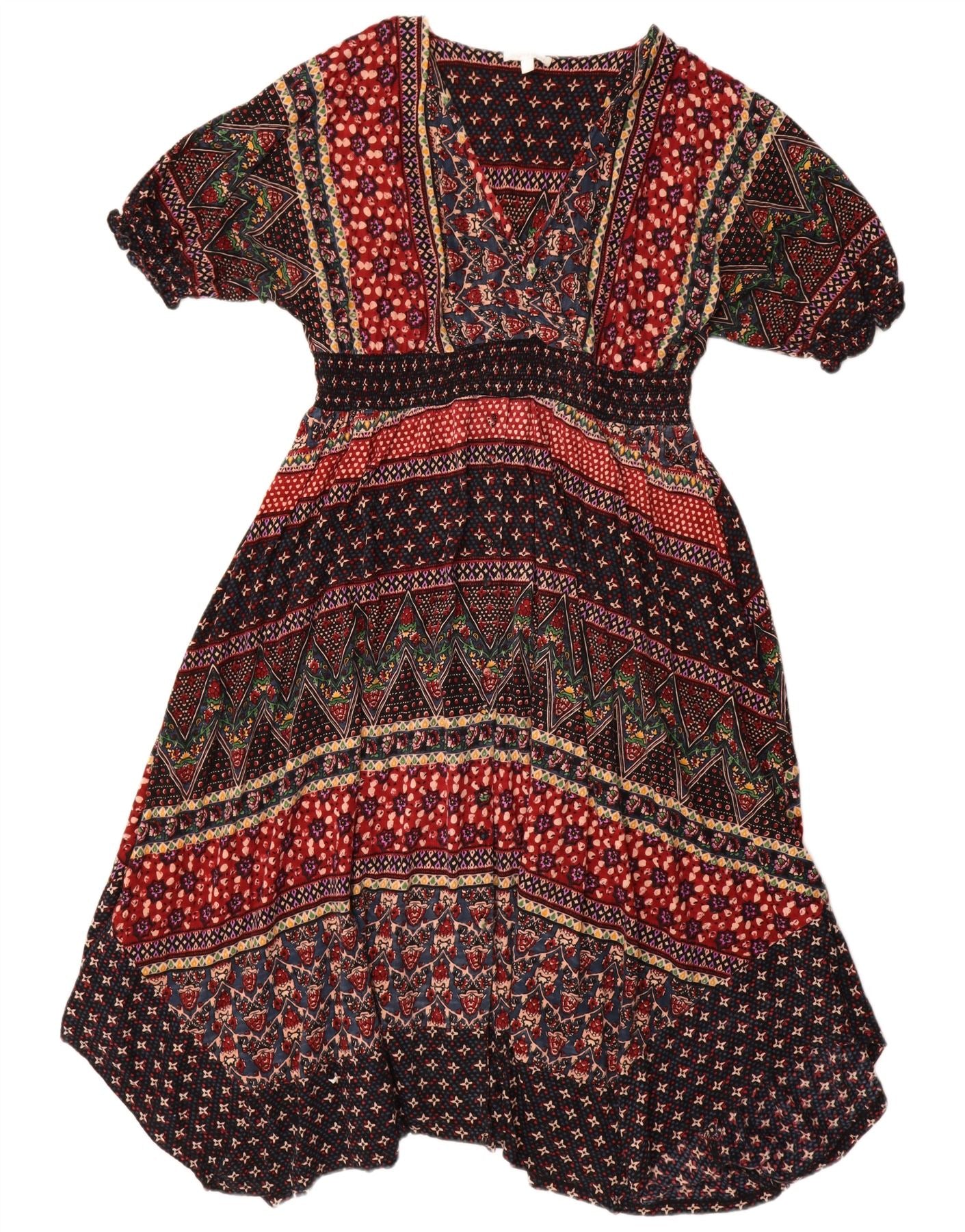 - Περιγραφή AI: Αυτό το γυναικείο φόρεμα Monsoon Empire είναι φτιαγμένο από ελαφρύ υφαντό ύφασμα, προσφέροντας άνετη, χαλαρή εφαρμογή. Διαθέτει ένα ζωντανό πολύχρωμο γεωμετρικό μοτίβο, που συνδυάζει πλούσια κόκκινα, μπλε και μαύρα. Η λαιμόκοψη σε V και τα κοντά μανίκια πλαισιώνουν το πάνω μέρος του σώματος. Μια αυτοκρατορική μέση σφίγγει απαλά, ρέει σε μια χαλαρή φούστα. Το στυλ πουλόβερ εξασφαλίζει ευκολία στη χρήση, ενσωματώνοντας μια μποέμ γοητεία.