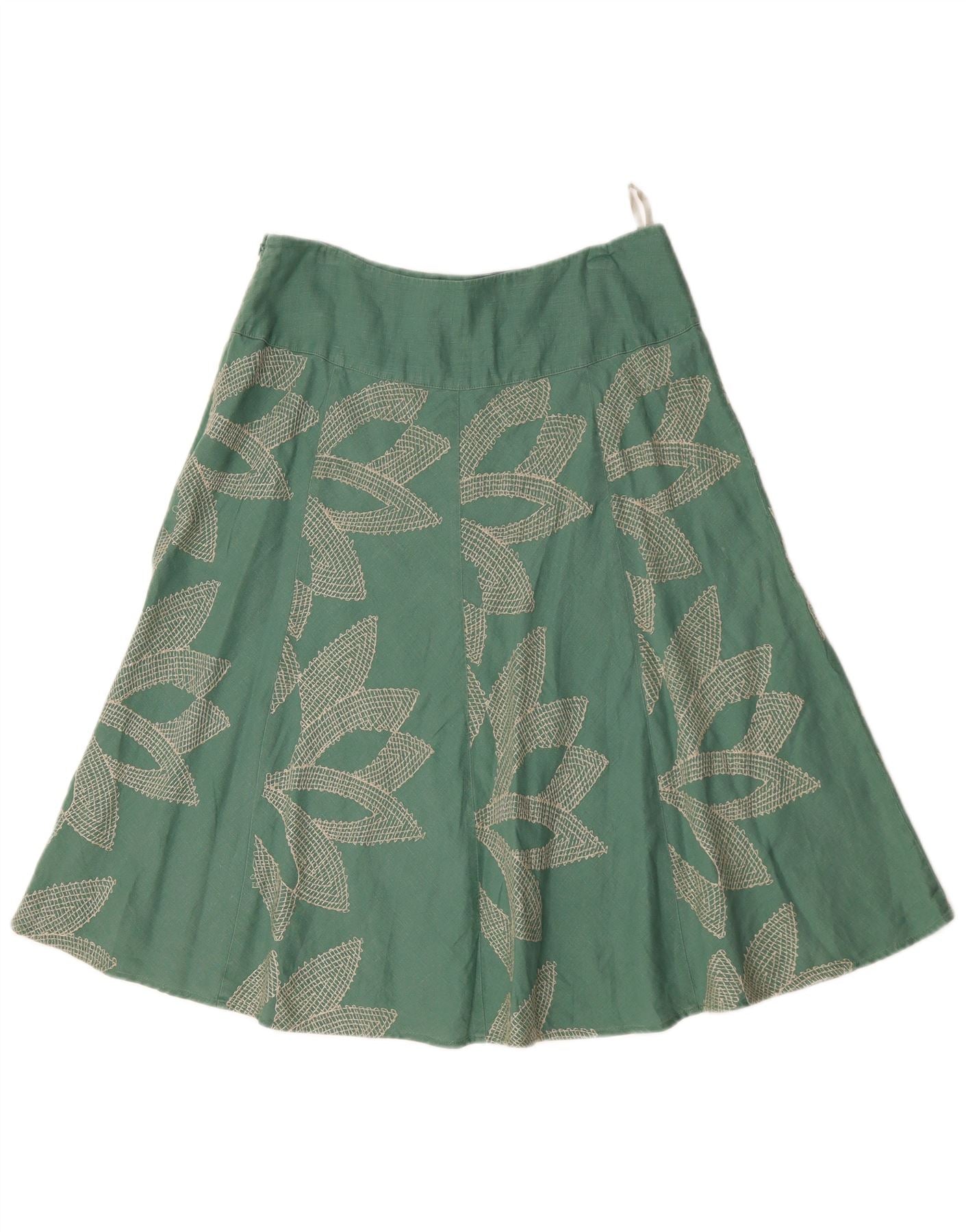 MONSOON Γυναικεία φούστα χαμηλής μέσης σε γραμμή Α UK 10 Small W32 Πράσινη φλοράλ βαμβακερή