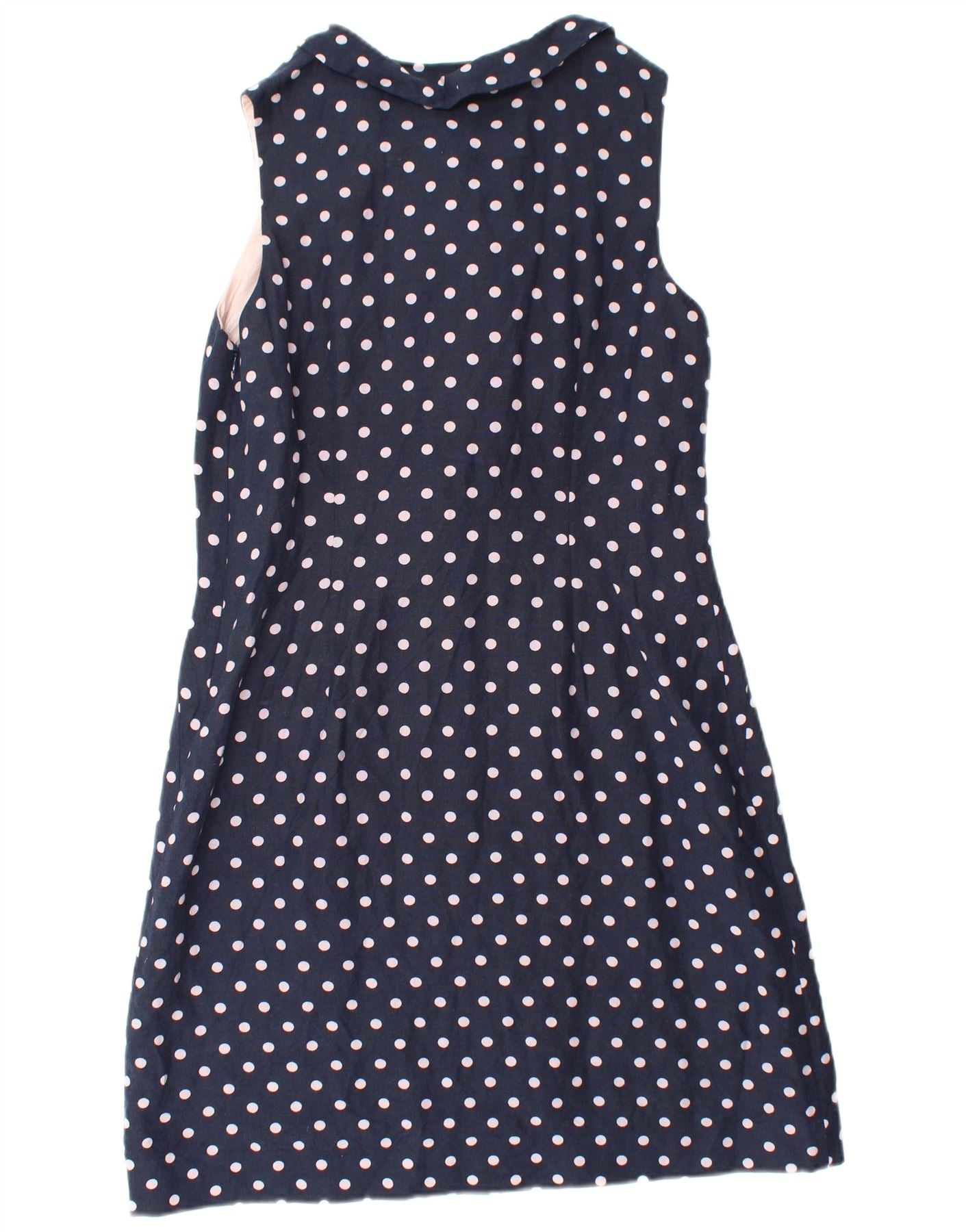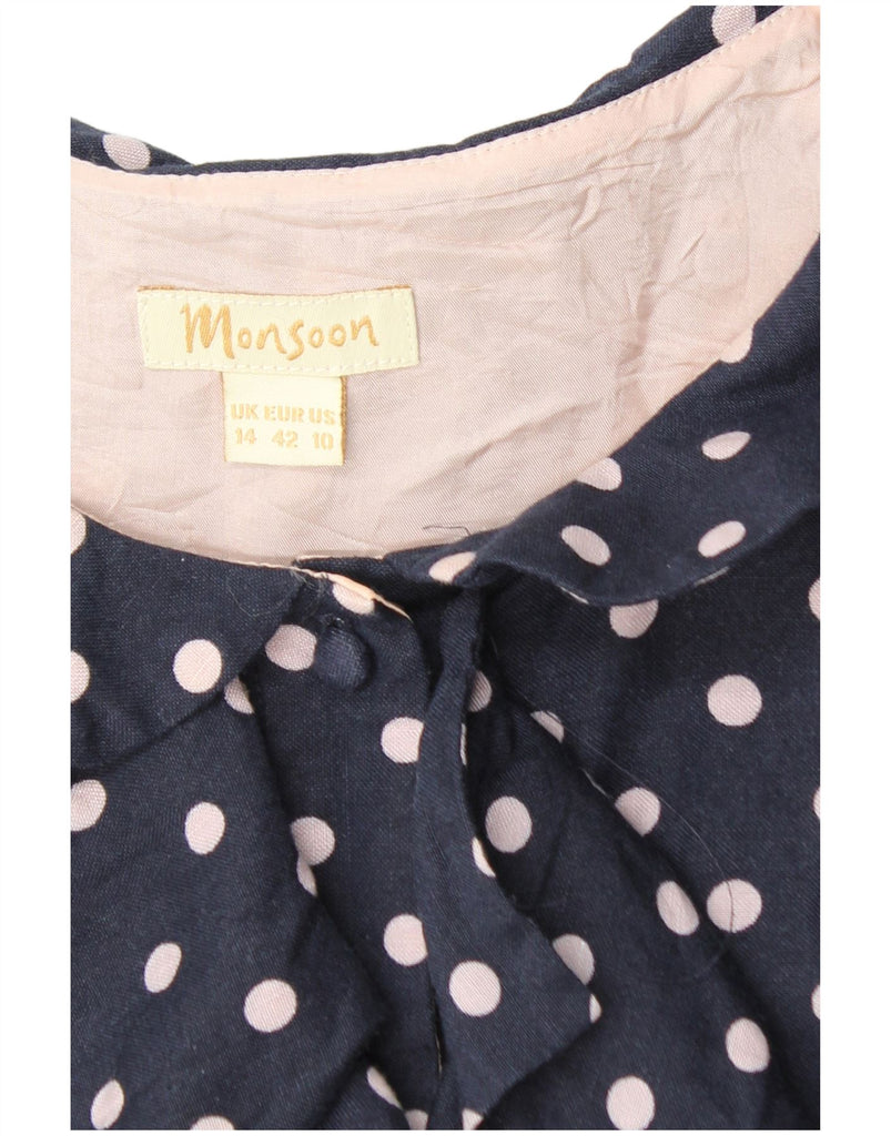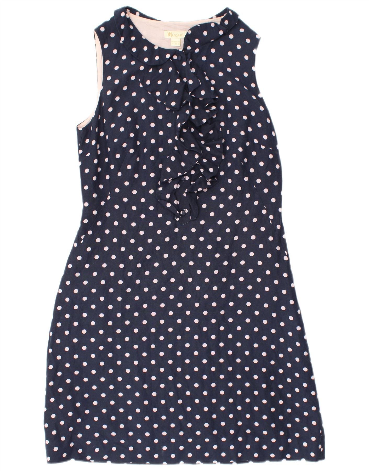 MONSOON Womens Ruffle Front Sheath Dress UK 14 Large Navy Blue Polka Dot