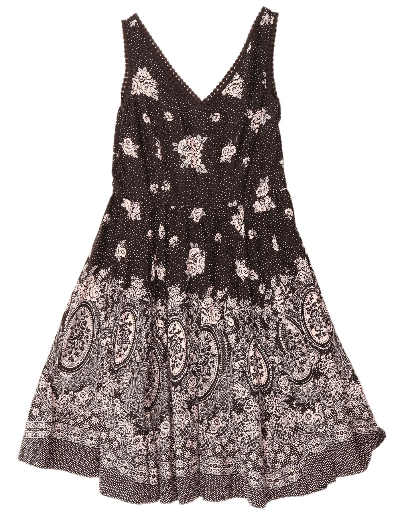 MONSOON Womens Sleeveless A-Line Dress UK 16 Large Black Paisley Cotton