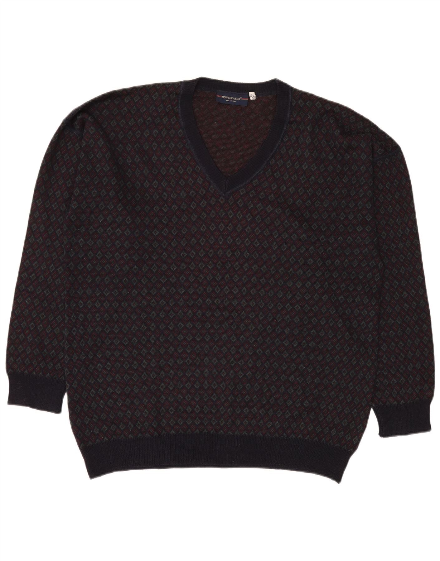 MONTECATINI Ανδρικό πουλόβερ με λαιμόκοψη με V λαιμόκοψη μεγάλο πολύχρωμο γεωμετρικό