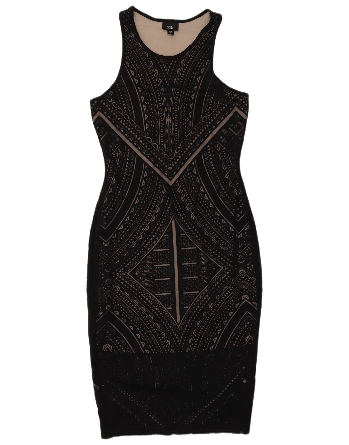 MOSSIMO Γυναικείο Αμάνικο Bodycon Φόρεμα UK 6 XS Μαύρο γεωμετρικό ρεγιόν
