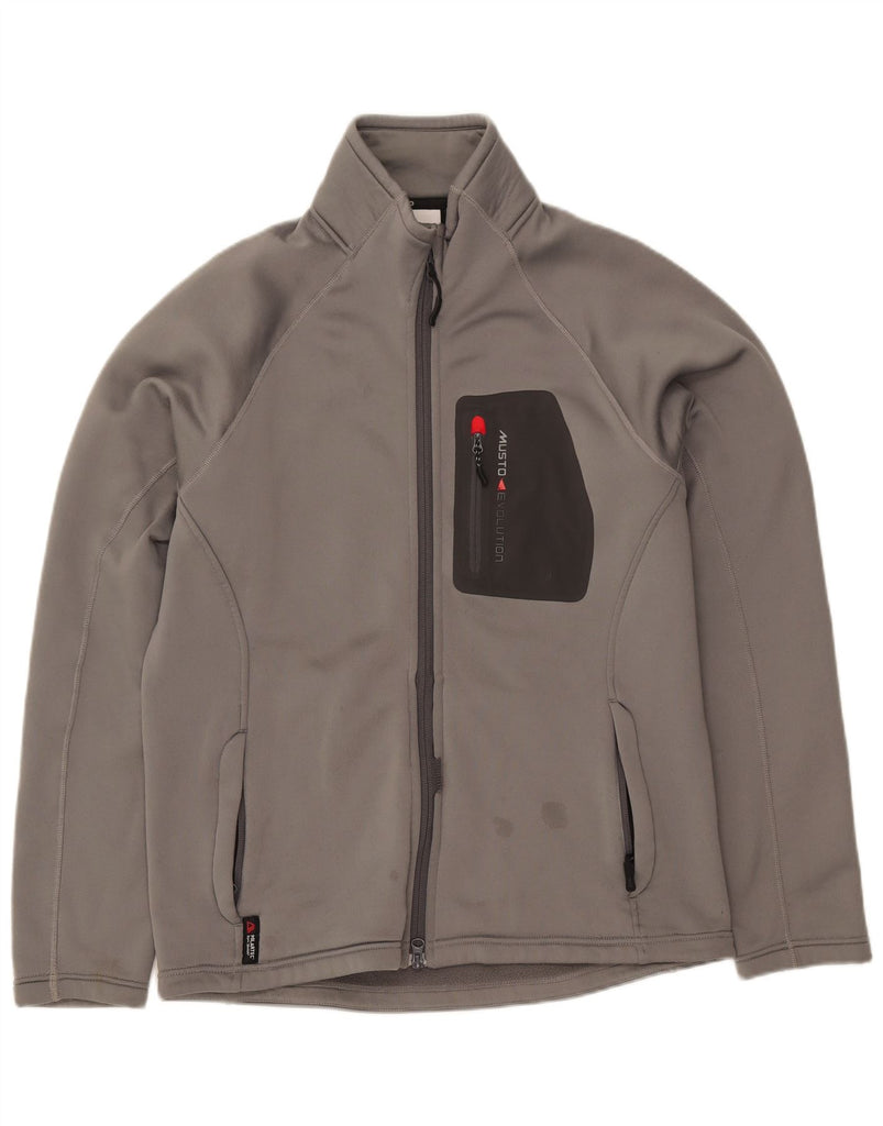 - AI Description: This Musto mens fleece jacket is crafted from a grey polyester blend, offering warmth and stretch. The fleece fabric provides a soft, comfortable texture. It features a collared neckline and a full zip closure for versatile wear. Long sleeves and a regular fit ensure ease of movement. Practical pockets and a subtle logo accent complete the design.