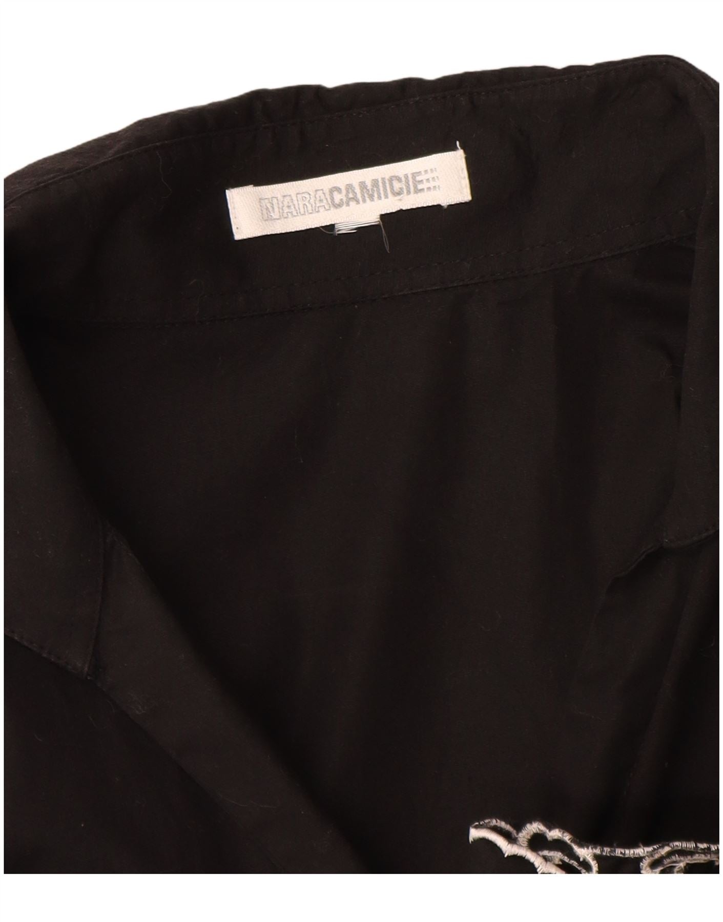 - Περιγραφή AI: Αυτή η γυναικεία μπλούζα πουκάμισου Naracamicie είναι φτιαγμένη από λείο μαύρο υφαντό ύφασμα. Διαθέτει κλασική λαιμόκοψη με γιακά και μπροστινό μέρος με κουμπιά. Τα μακριά μανίκια προσφέρουν κομψή κάλυψη. Η κανονική εφαρμογή εξασφαλίζει άνετη χρήση. Περίπλοκα λευκά κεντήματα κοσμούν τις μανσέτες και το στρίφωμα, δημιουργώντας ένα εντυπωσιακό γραφικό σχέδιο. Αυτό το επώνυμο κομμάτι προσφέρει εκλεπτυσμένο στυλ.