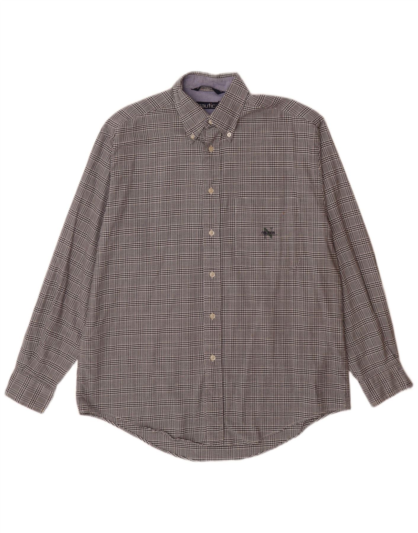NAUTICA Ανδρικό φανελένιο πουκάμισο Βαμβακερό Houndstooth μεσαίου μπλε ναυτικού