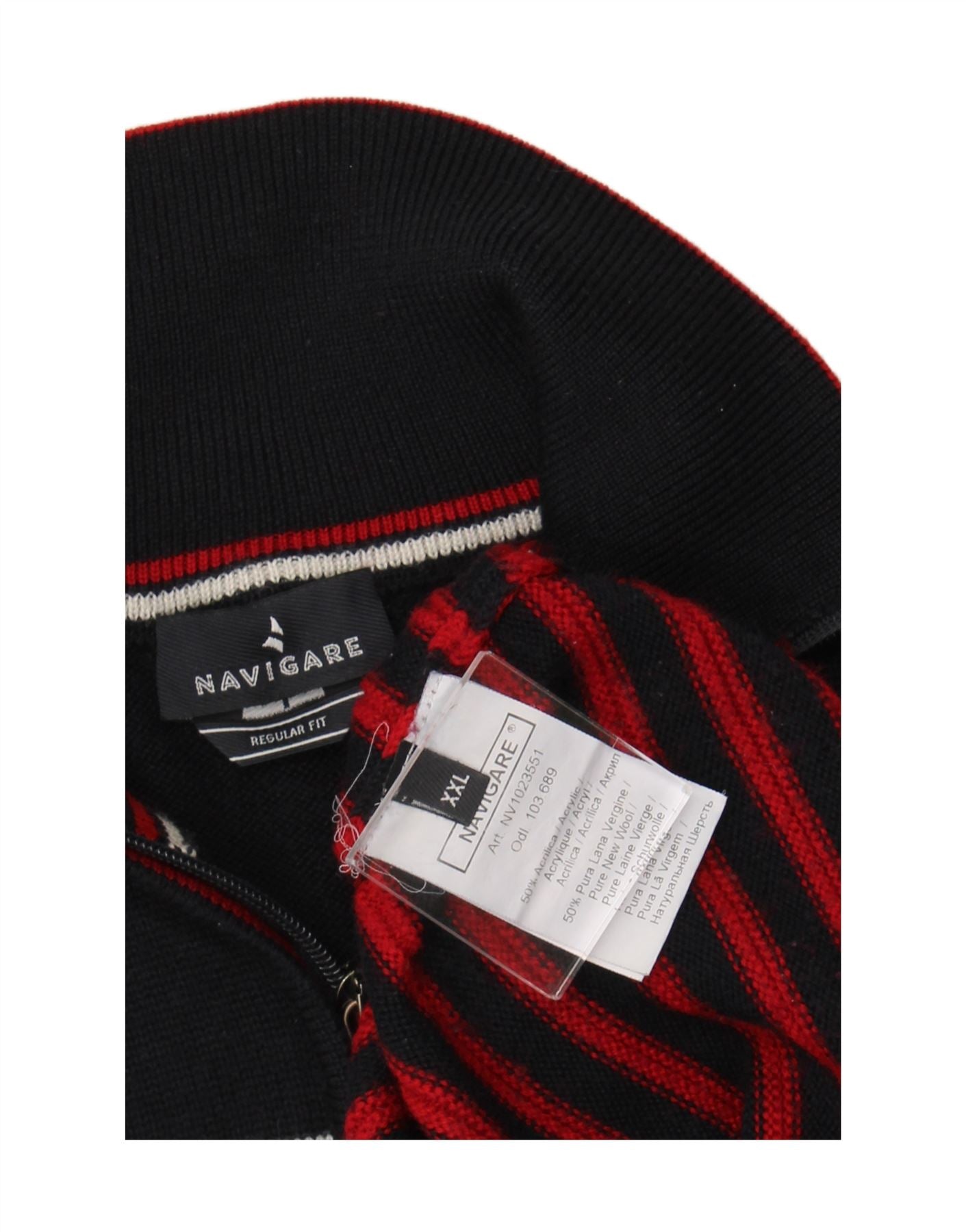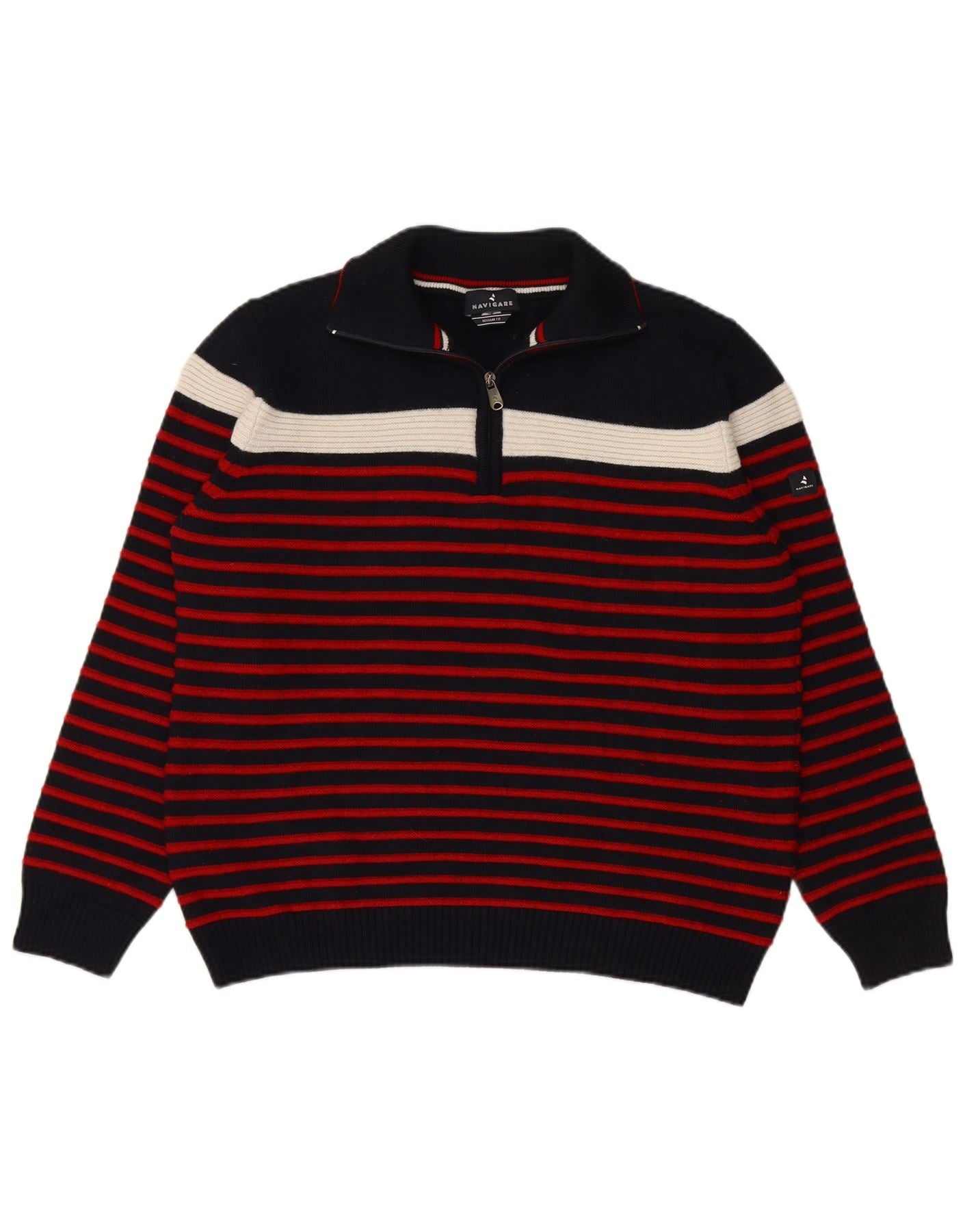 NAVIGARE Womens Zip Neck Jumper Sweater UK 20 2XL Navy Blue Striped