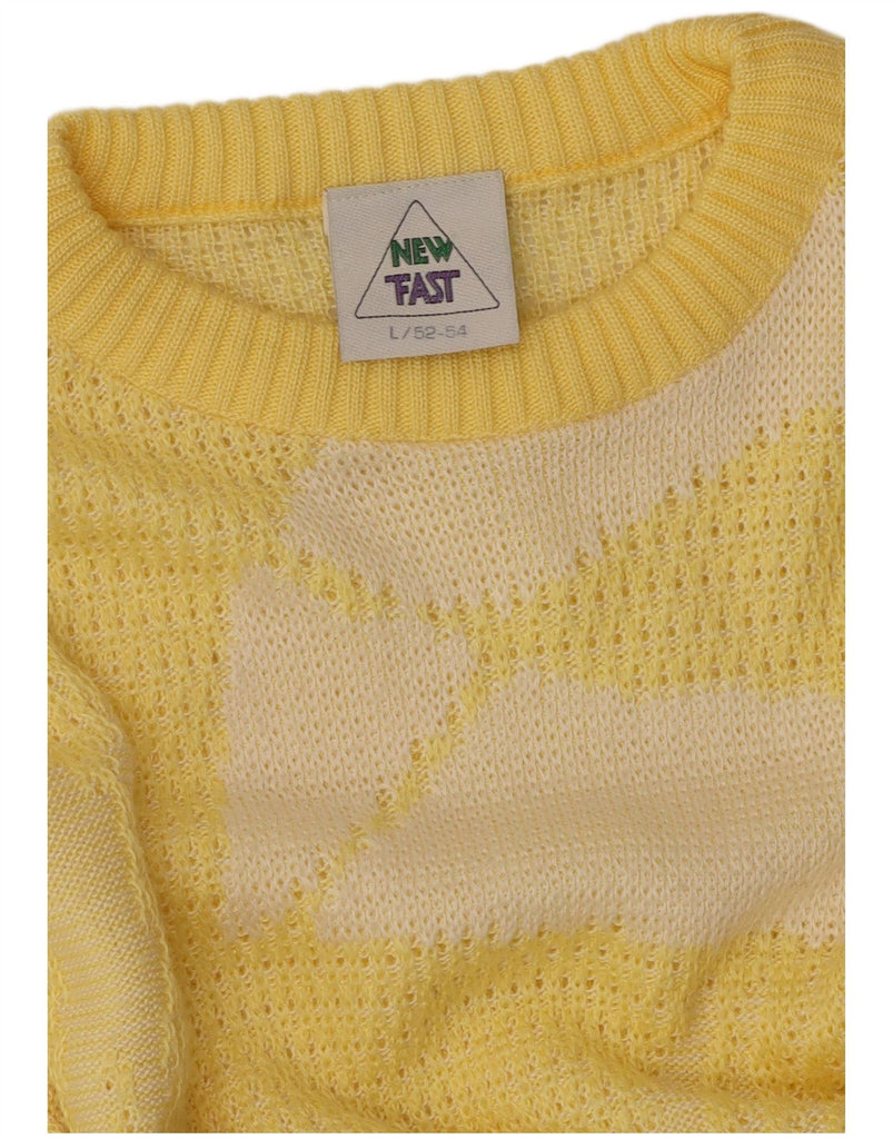 ΝΕΟ FAST Γυναικείο πουλόβερ με λαιμό σκάφος UK 16 μεγάλο κίτρινο γεωμετρικό