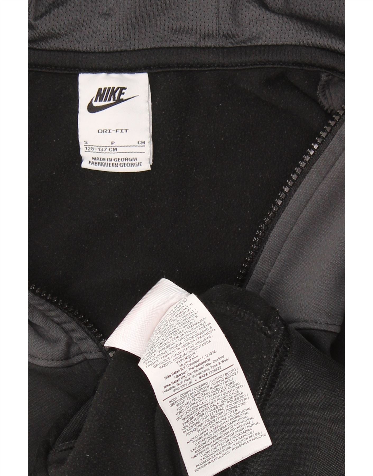 NIKE Boys Dri Fit Graphic Hoodie Jumper 8-9 Years Small Black Colourblock