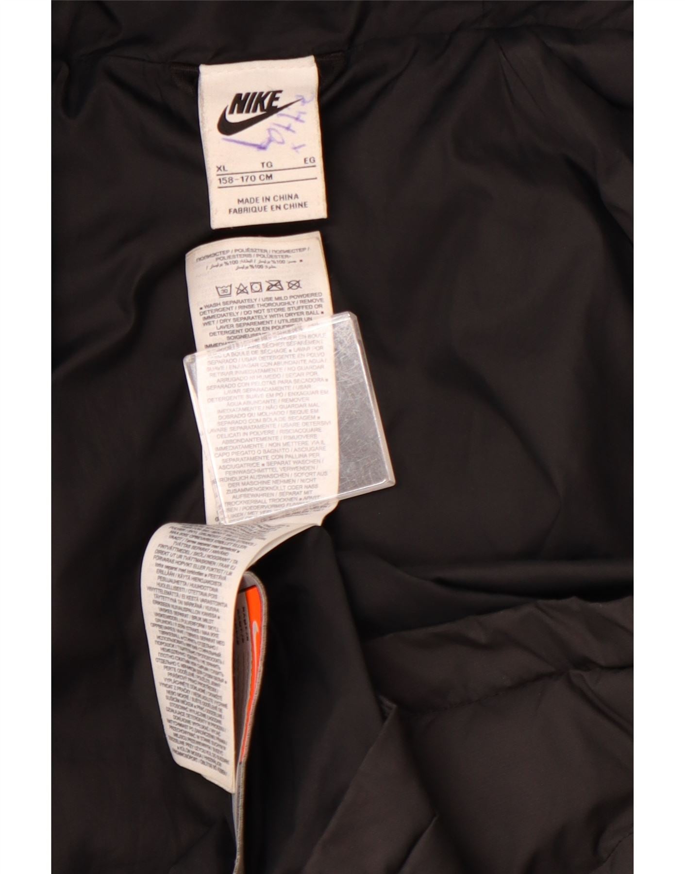 Μπουφάν NIKE για αγόρια με κουκούλα με επένδυση 13-14 ετών XL μαύρο χρώμα πολυεστέρα