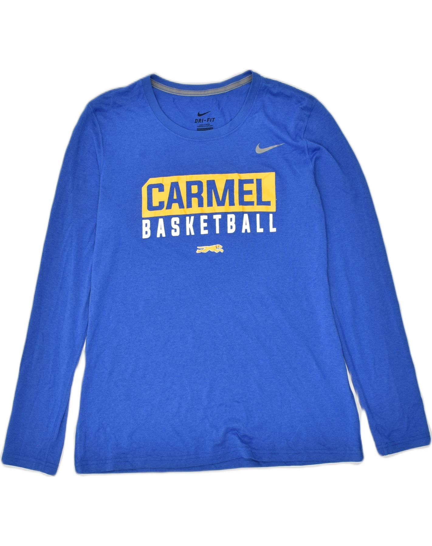 NIKE Γυναικείο τοπ γραφικό Dri Fit Μακρυμάνικο UK 14 μεγάλο μπλε πολυεστέρας
