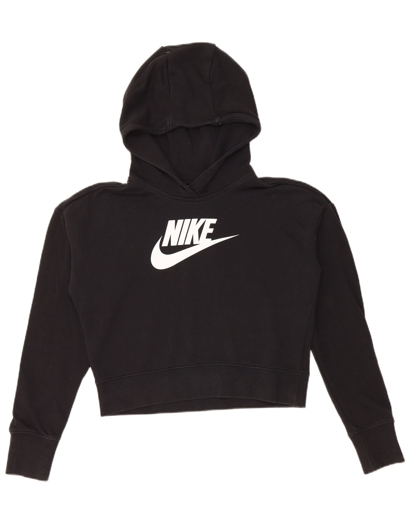 NIKE Girls Crop Graphic Hoodie Jumper 13-14 Years XL Black Cotton